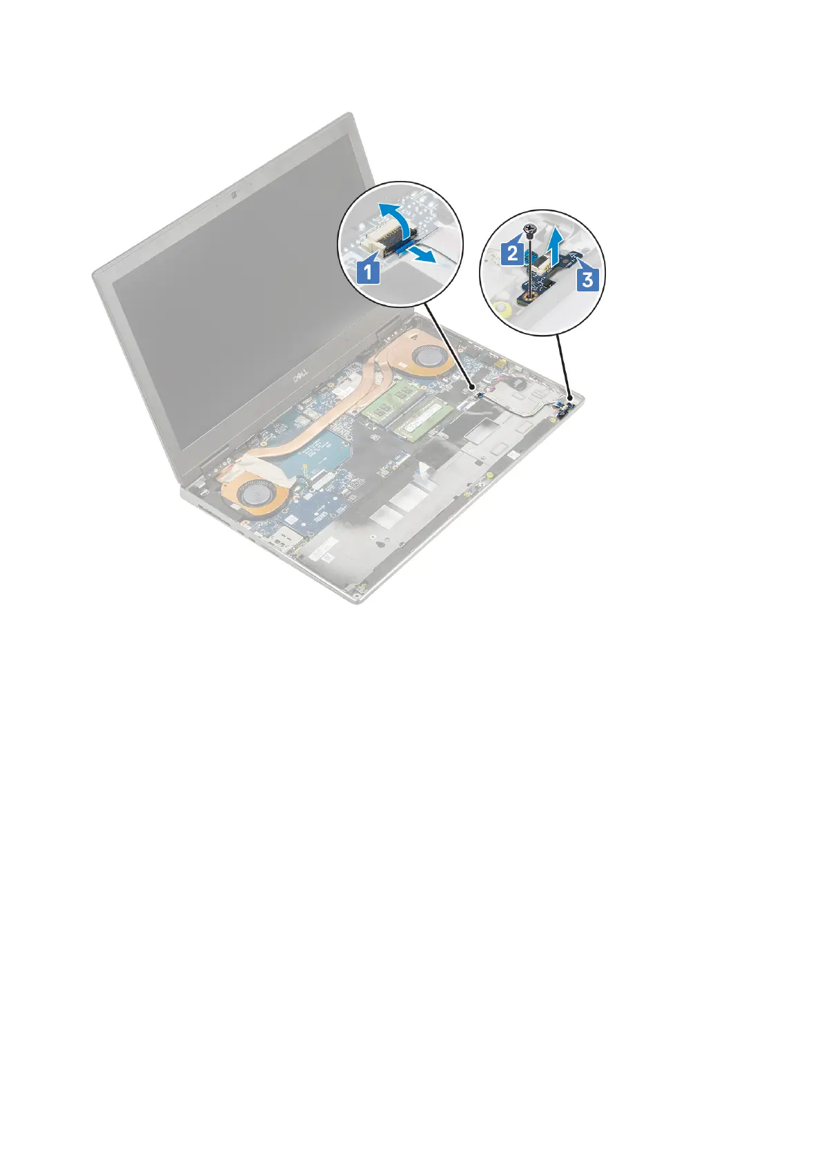 b. Replace the single (M2.0x5.0) screw to secure the LED board to the system [2].