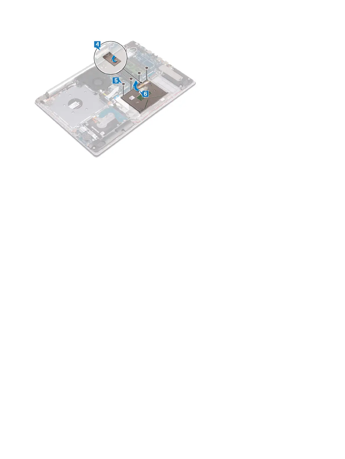 6 Slide and lift the touchpad o the palm rest and keyboard assembly.
