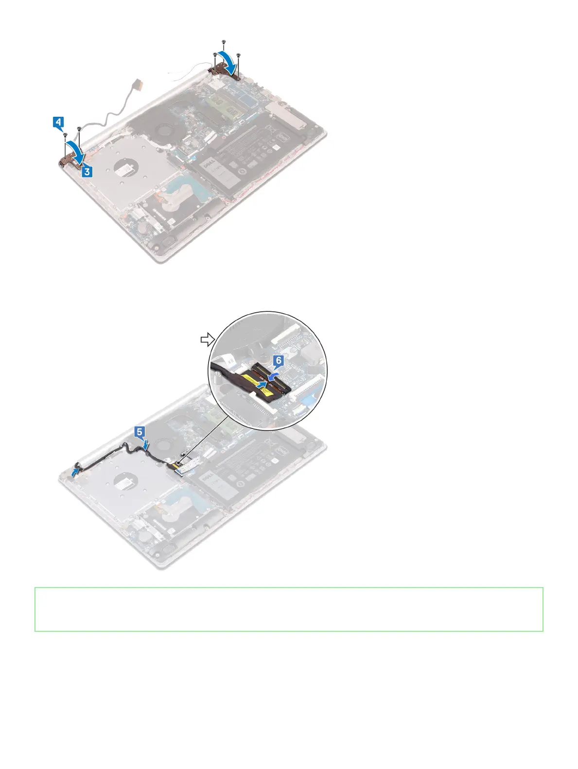 5 Route the display cable through the routing guides on the fan and the palm rest and keyboard assembly.