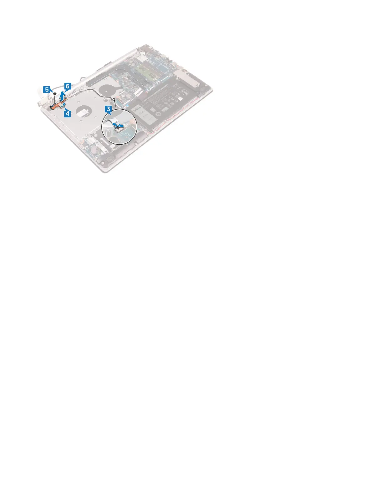 6 Lift the power-button board, along with the cable, o the palm rest and keyboard assembly.