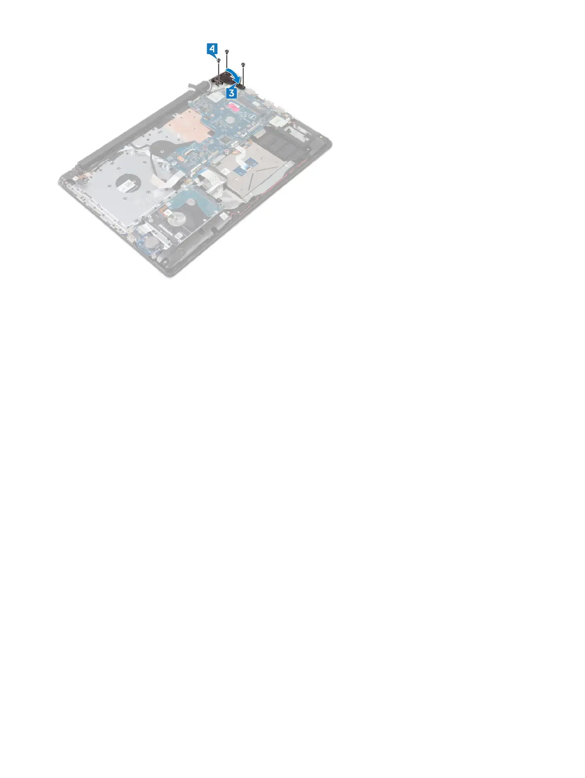13 Slide the power-button board cable into the connector on the system board and close the latch.