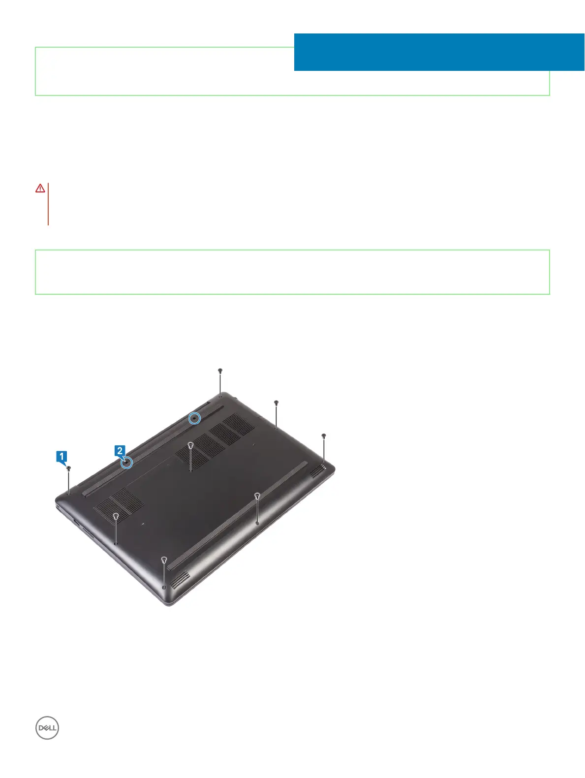 1 Remove the eight screws (M2.5x6) that secure the base cover to the palm rest and keyboard assembly.
