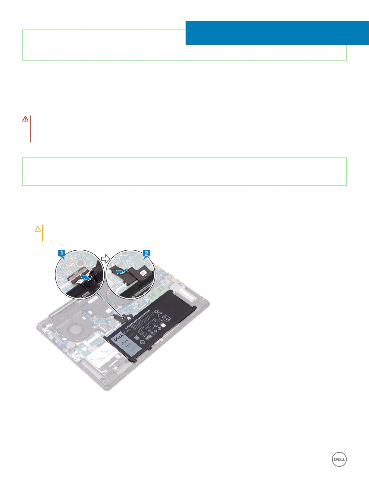 1 Connect the battery cable to the system board, if applicable.