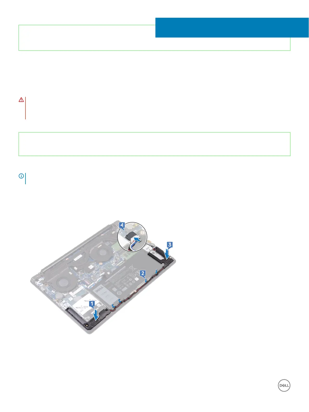 4 Connect the speaker cable to the system board.