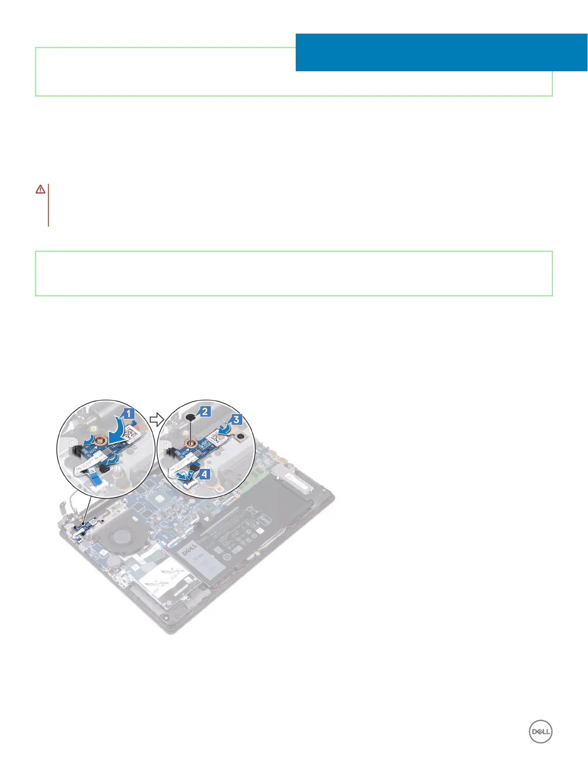 2 Replace the screw (M2x2) that secures the power-button board to the palm rest and keyboard assembly.