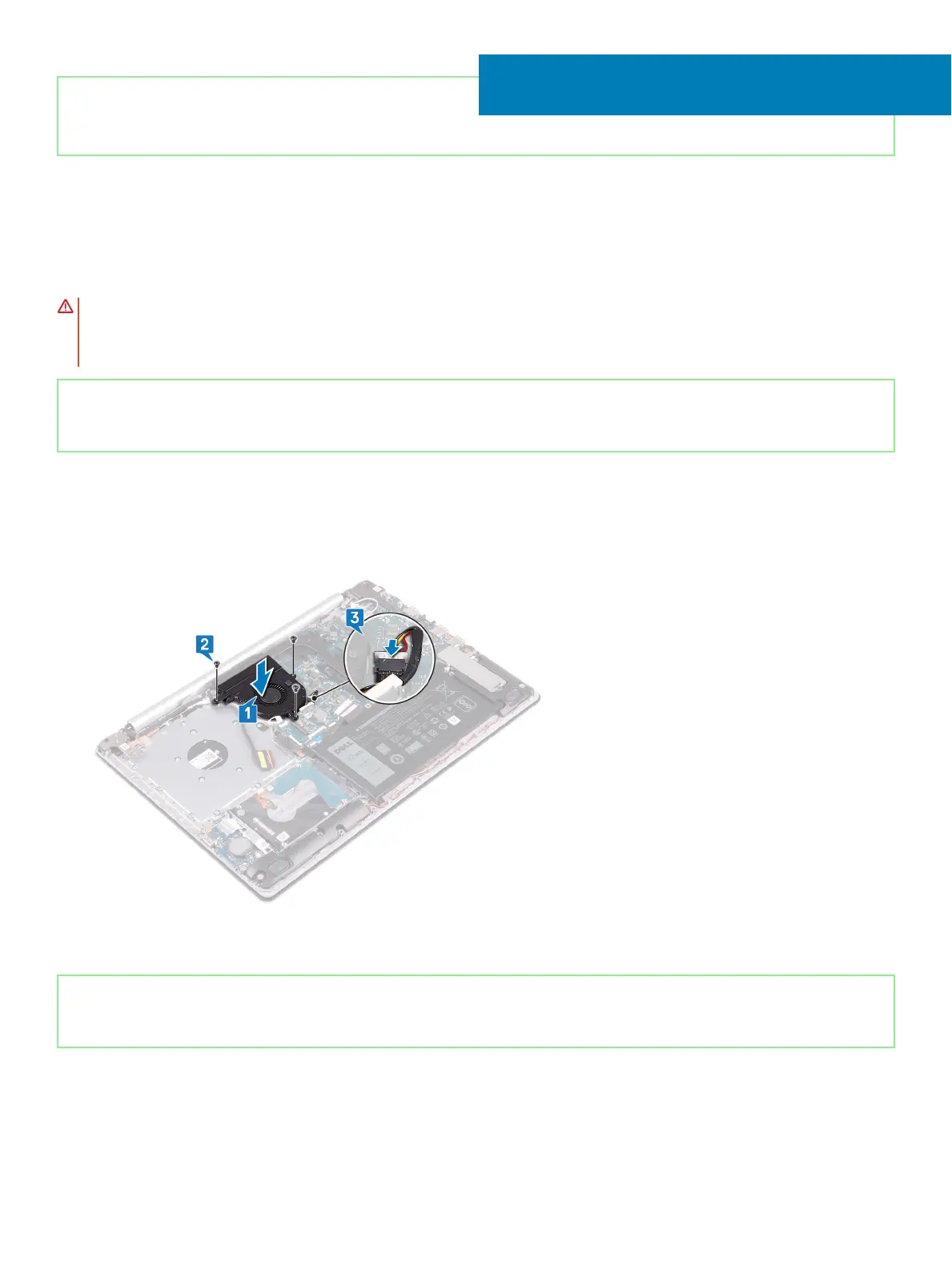 2 Replace the three screws (M2.5x5) that secure the fan to the palm rest and keyboard board assembly.