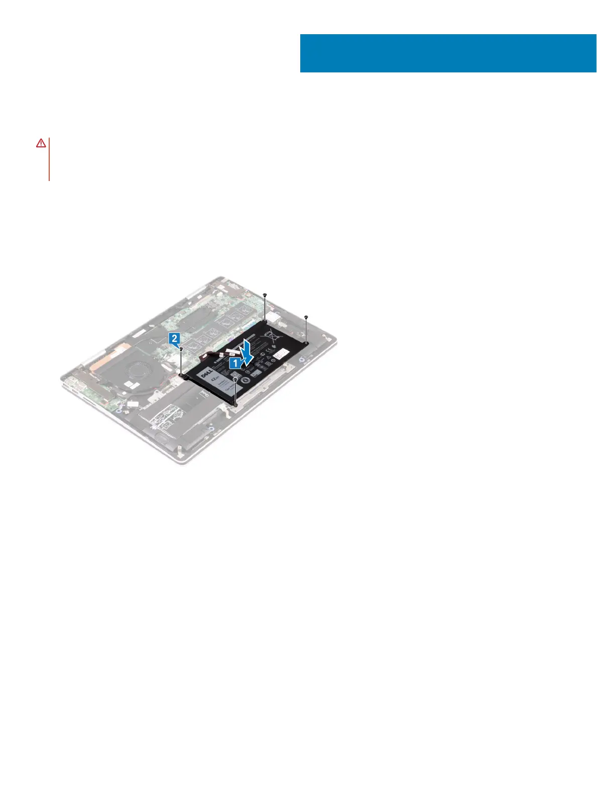 2 Replace the four screws (M2x3) that secure the battery to the palm-rest assembly.