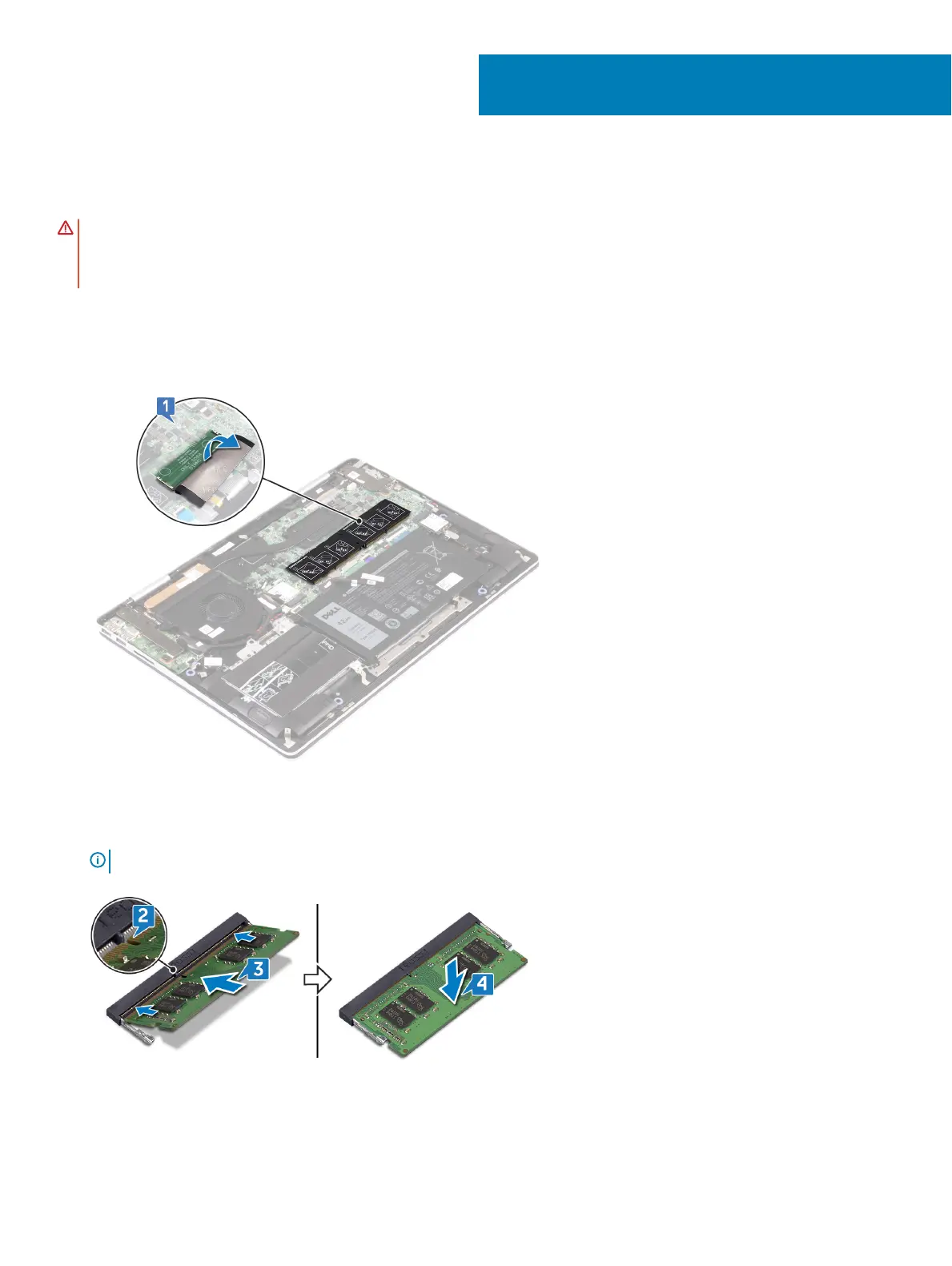 3 Slide the memory module rmly into the slot at an angle onto the memory-module slot.