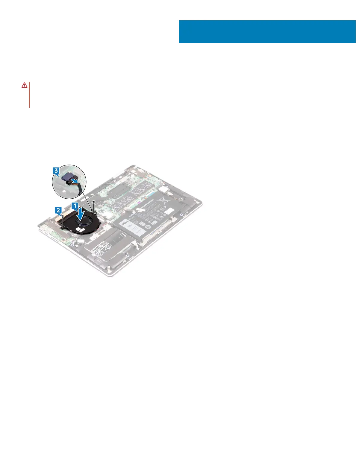2 Replace the two screws (M2x3) that secure the fan to the palm-rest assembly.