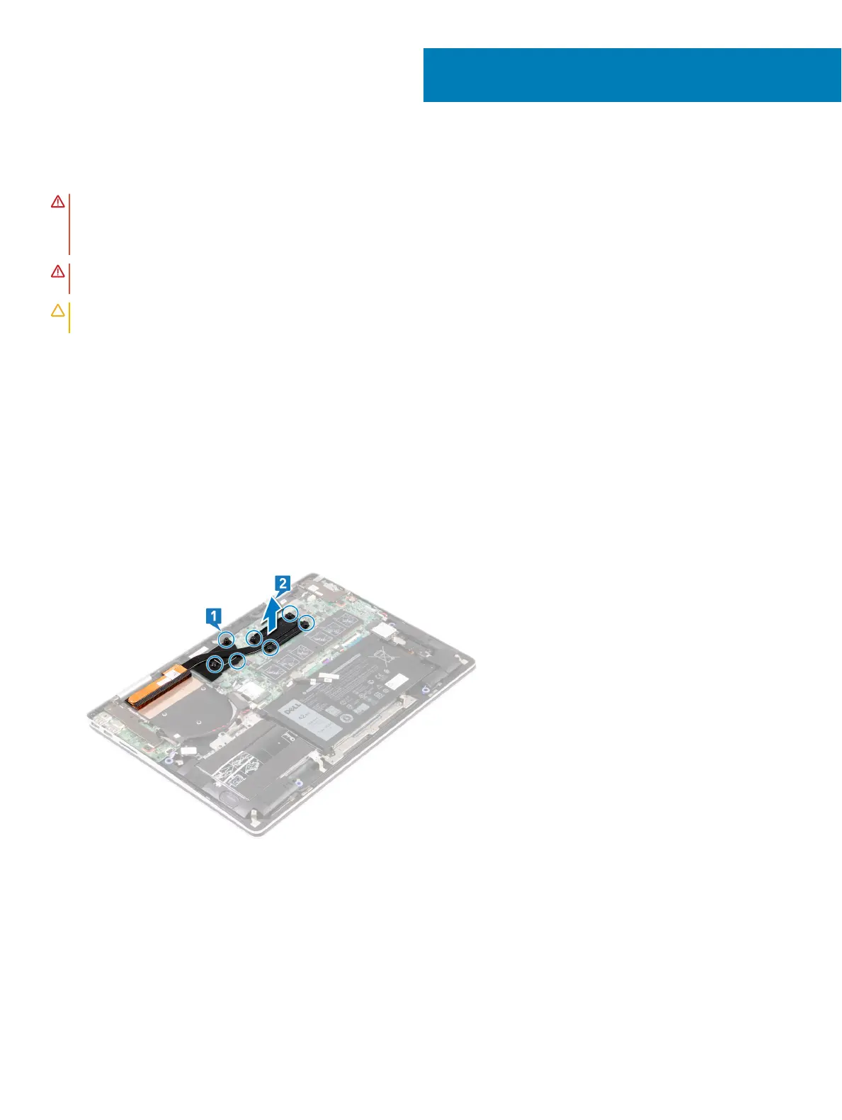 1 In reverse order (as indicated on the heat sink), loosen the seven captive screws that secure the heat sink to the system board.