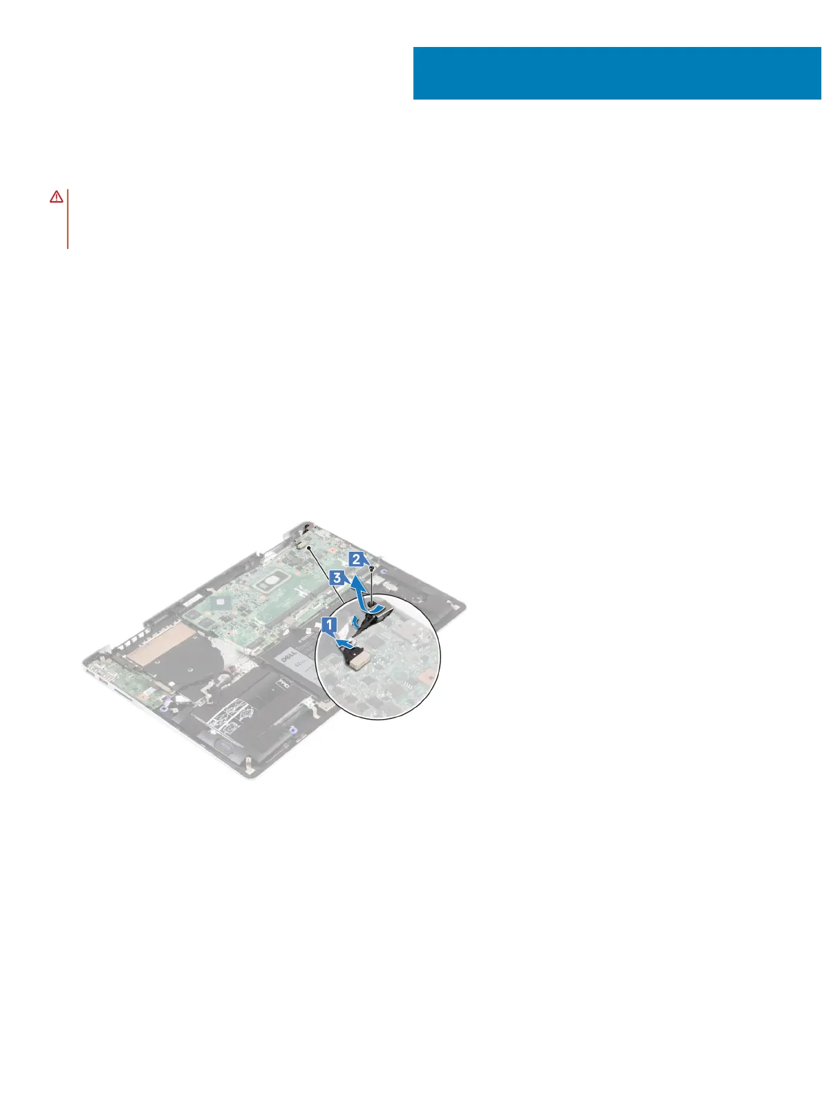 3 Lift the power-adapter port, along with its cable, o the palm-rest assembly.