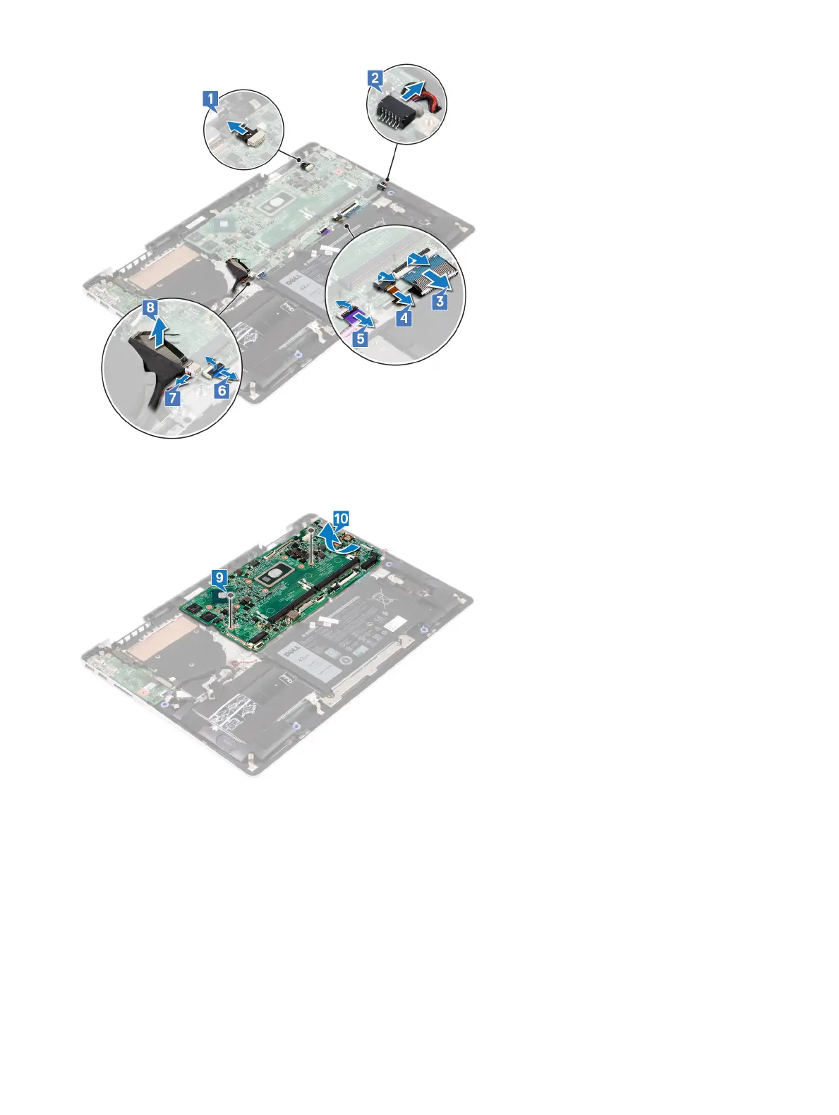 9 Remove the two screws (M2x2) that secure the system board to the palm-rest assembly.