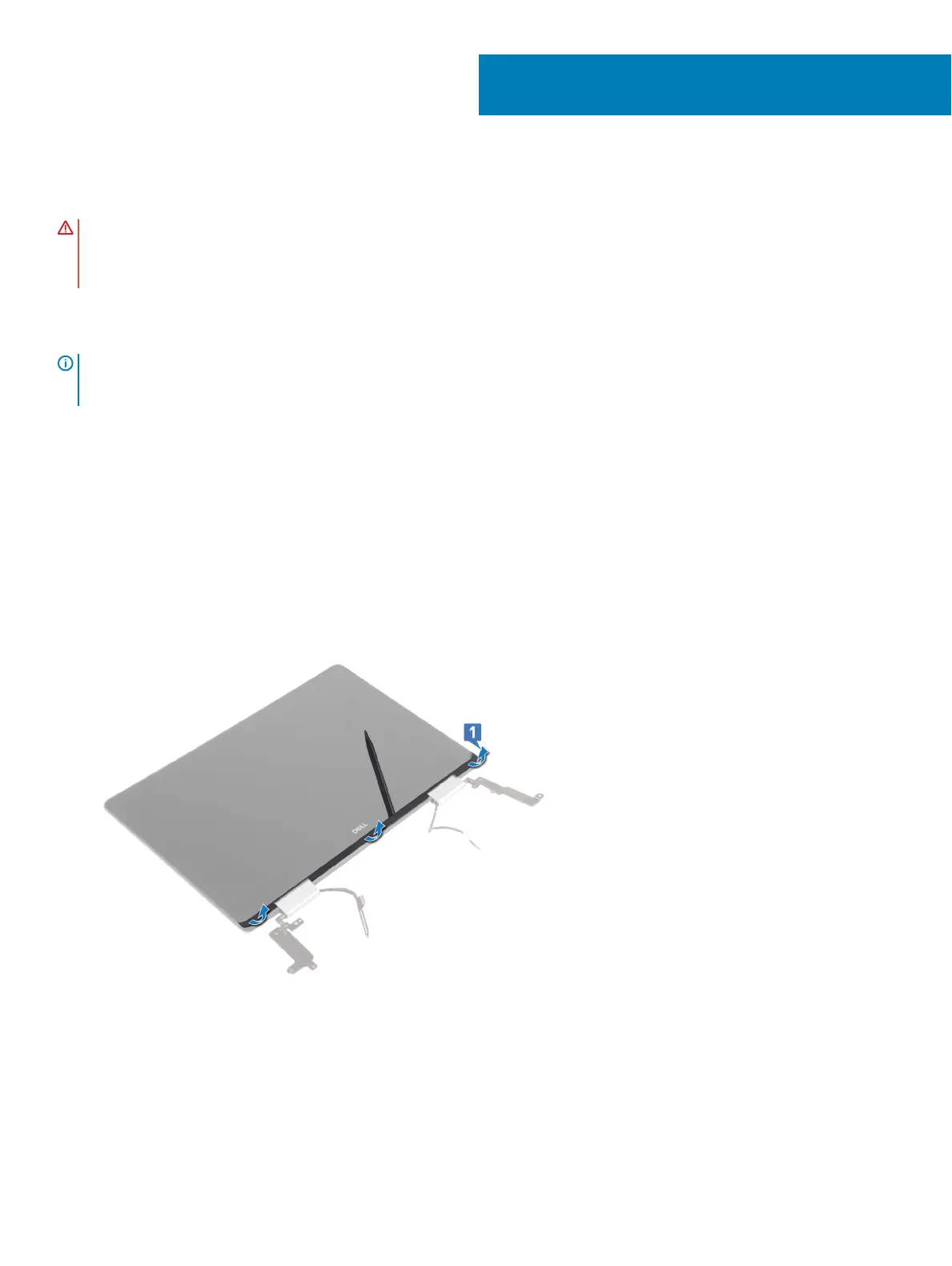3 Using a plastic scribe, ip out the pull tab of the SR tape from both sides of the display panel.