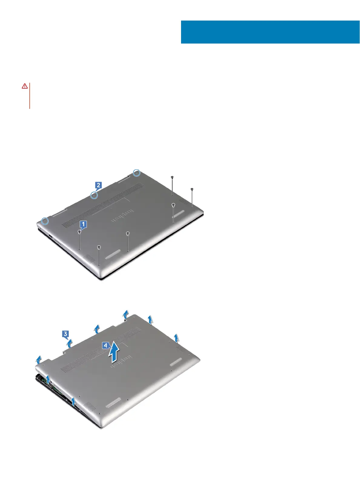 4 Lift the base cover o the palm-rest and keyboard assembly.