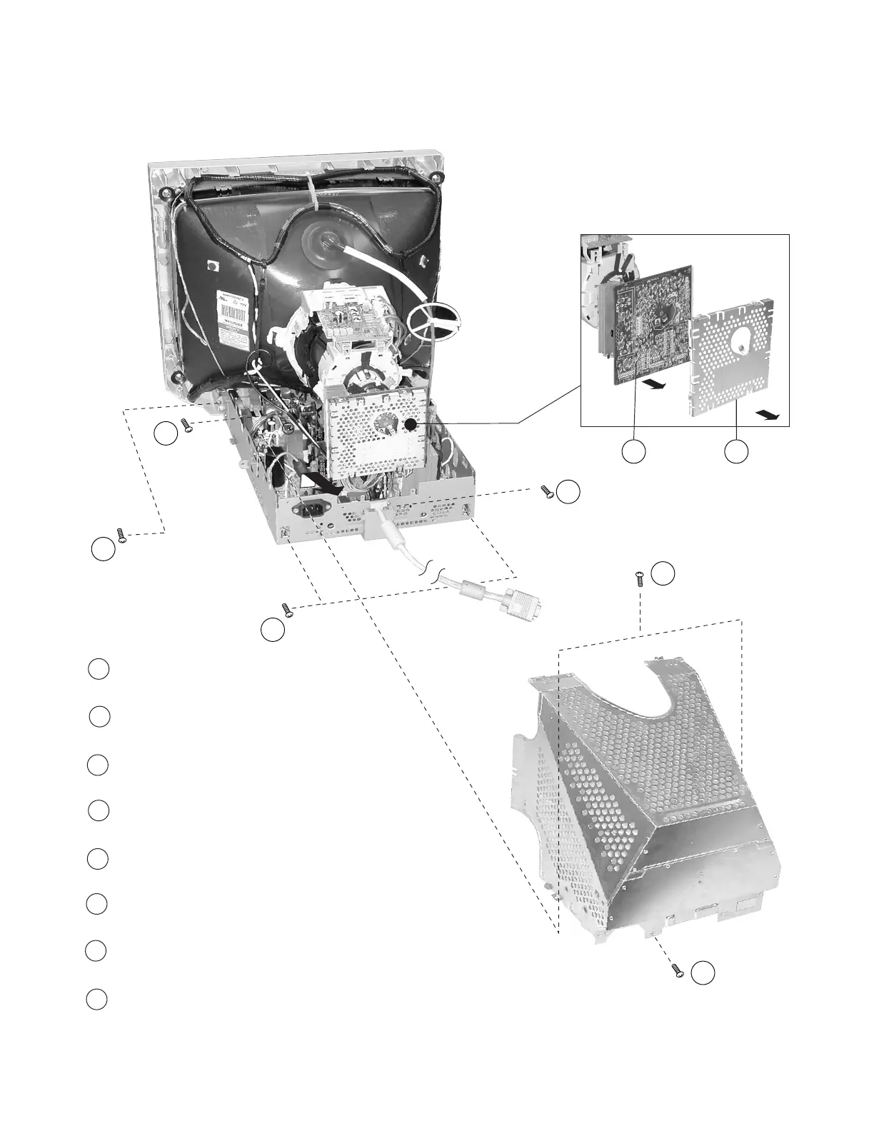 Remove (7) screws (+BVTP 3 x 8) from the D Board. Lift