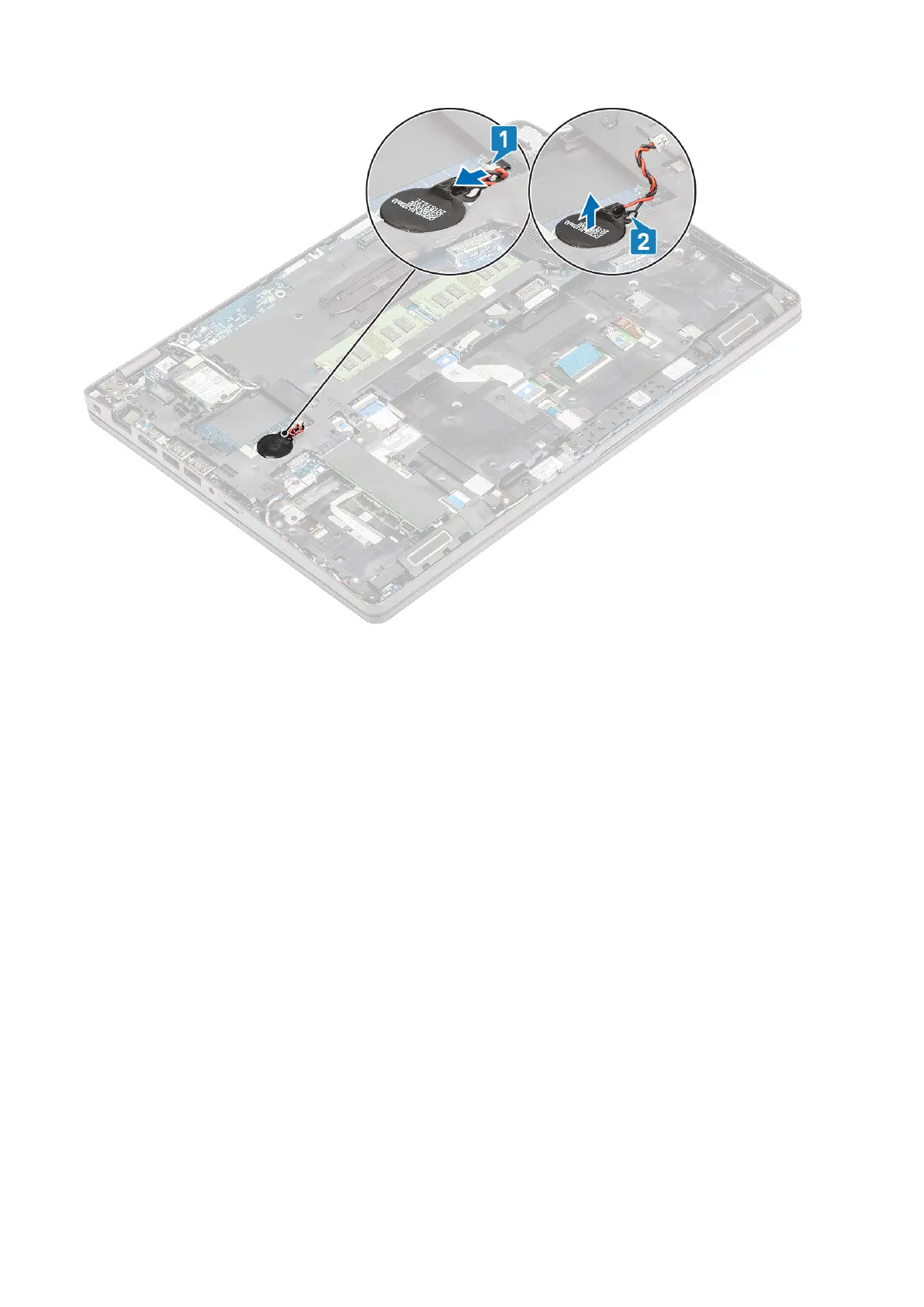 2. Connect the coin cell battery cable to the connector on the system board [2].