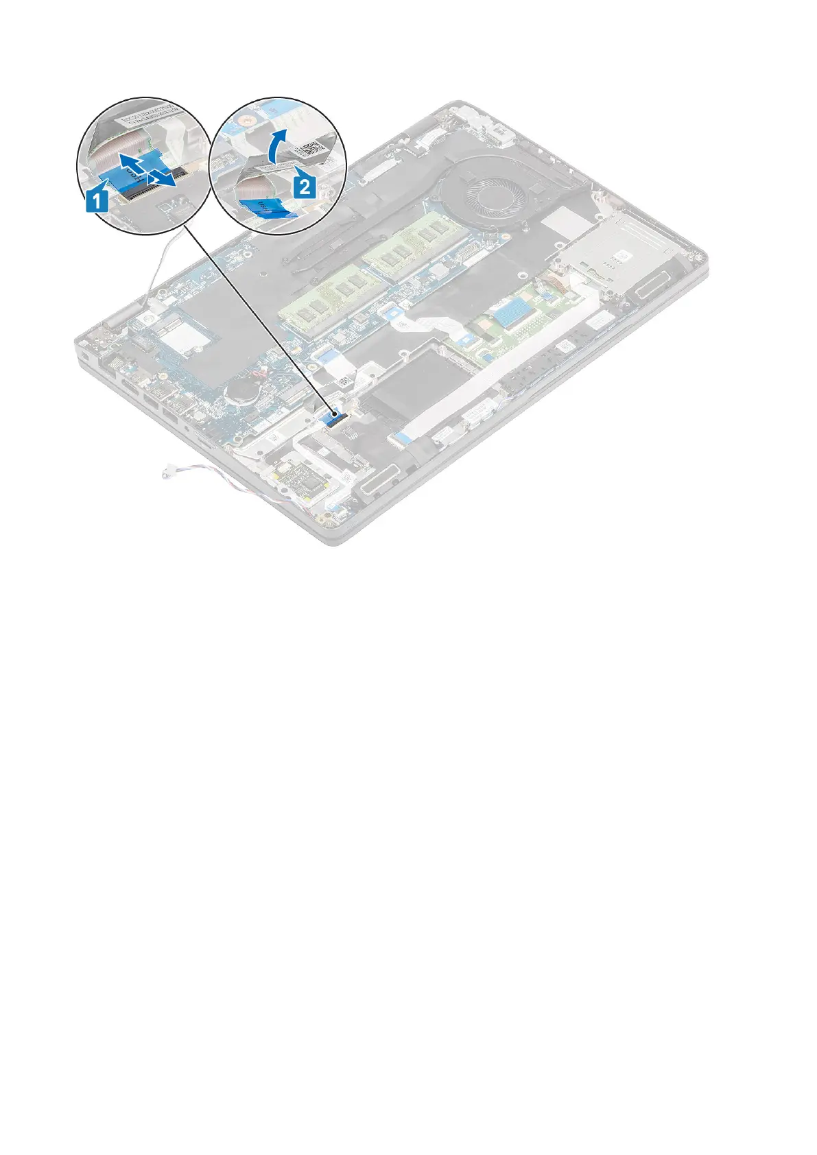 2. Disconnect the LED board cable from the connector on the system board [1].
