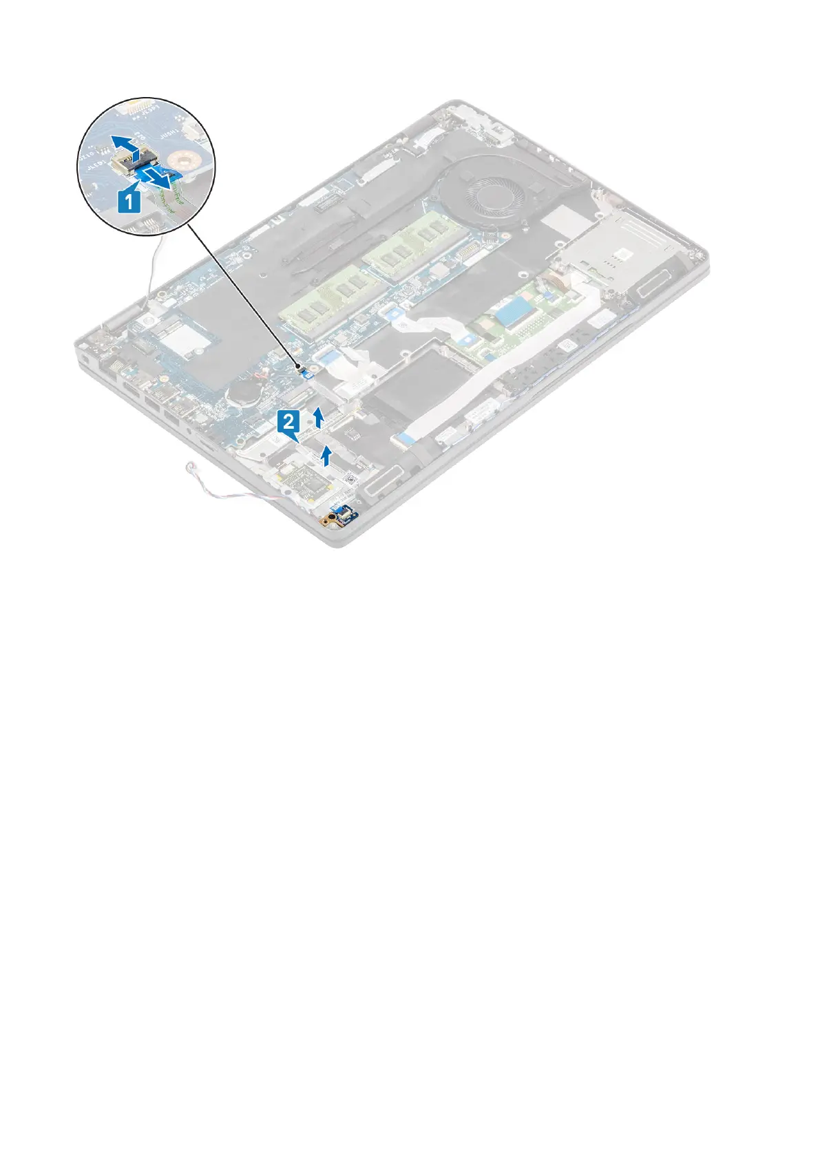 4. Remove the single (M2x3) screw that secures LED board to the palmrest [1].