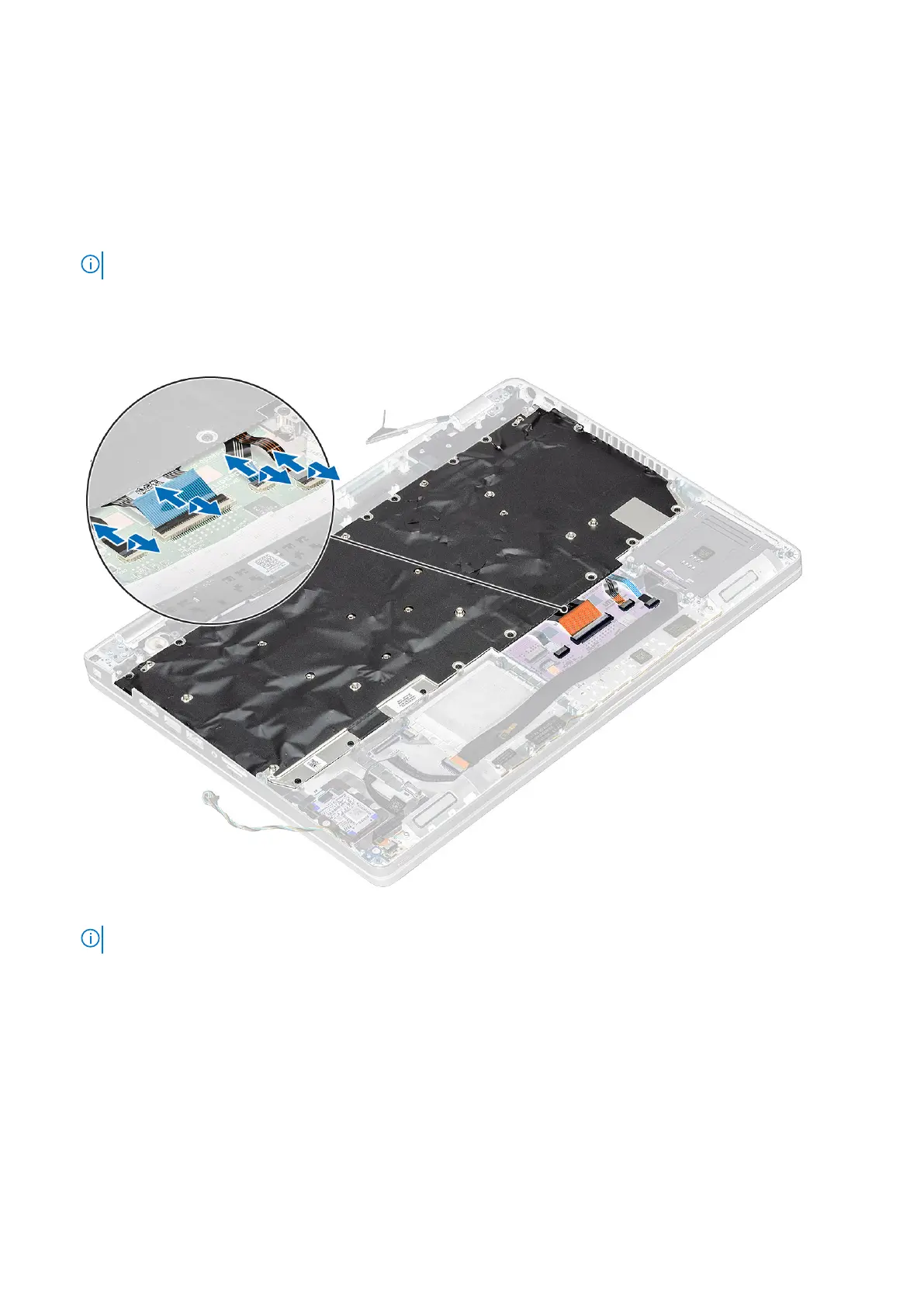 1. Lift the latch and disconnect the backlit cable and the keyboard cables from the connectors on the touchpad.