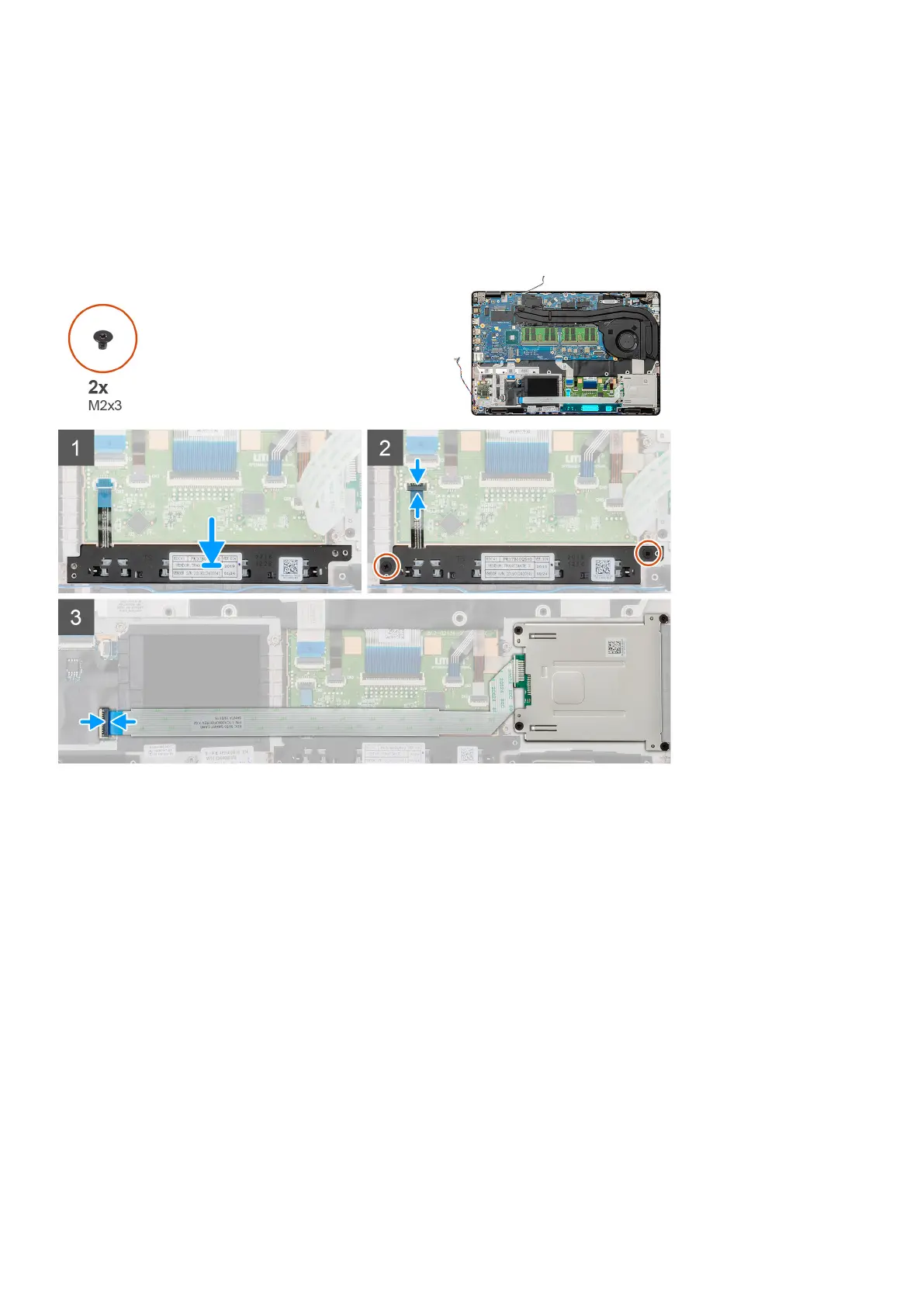 4. Install the two (M2x3) screws to secure the touchpad buttons on to the computer.