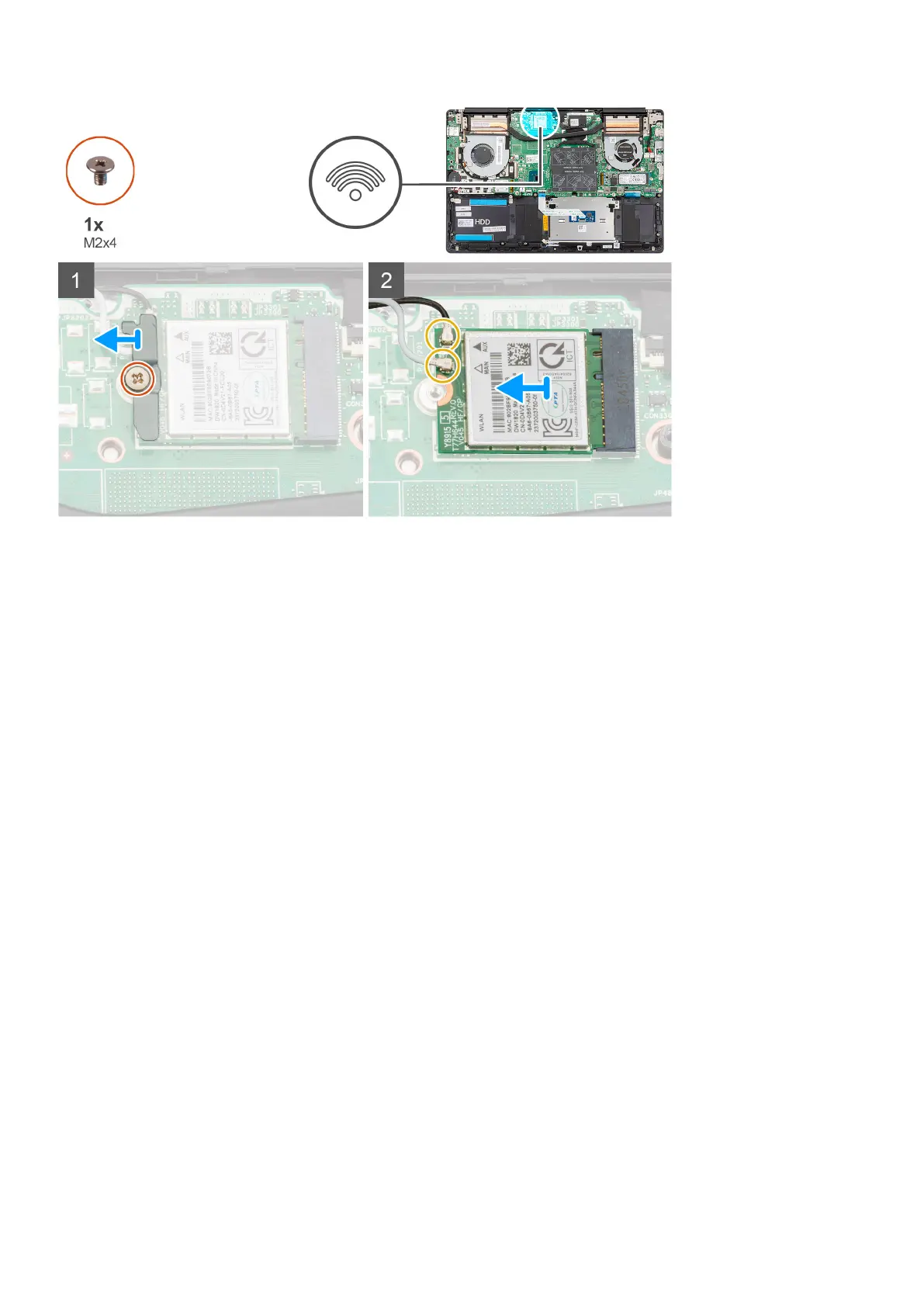 1. Remove the screw (M2x4) that secures the WLAN card bracket to the WLAN card.