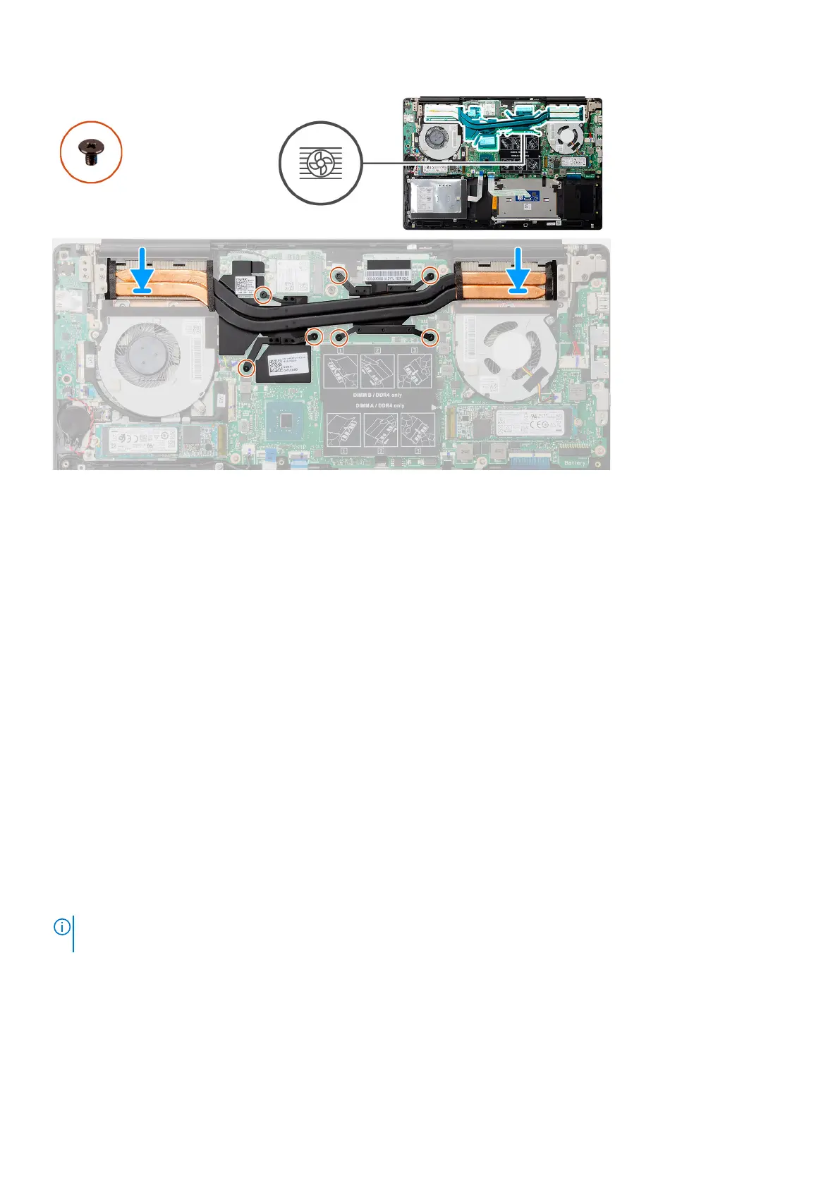 1. Place the heat sink on the system board and align the screw holes on the heat sink with the screw holes on the system