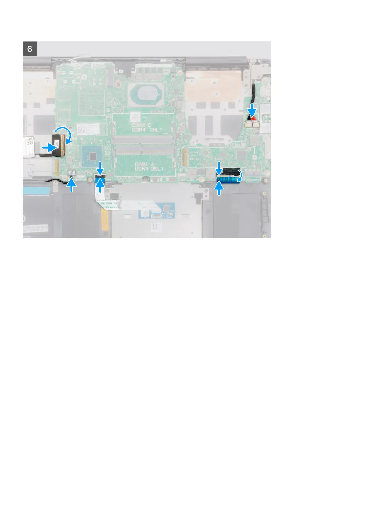 2. Replace the six screws (M2x4) that secure the system board to the palm-rest and keyboard assembly.