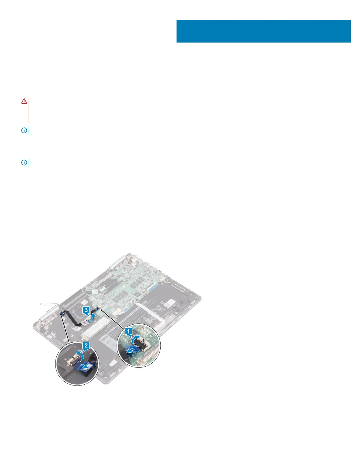 1 Open the latch and disconnect the power button with ngerprint reader cable from the system board.