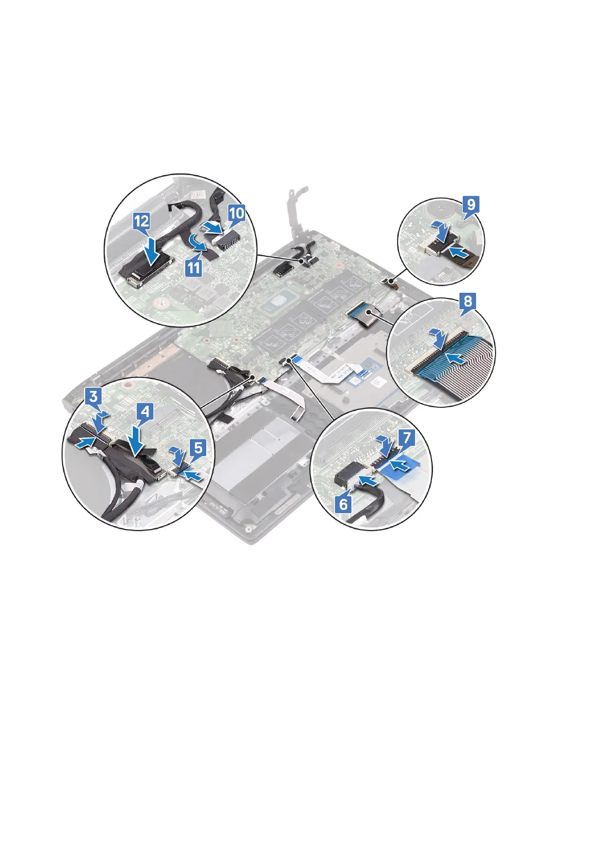 9. Slide the keyboard-backlight cable to the system board and close the latch to secure the cable.