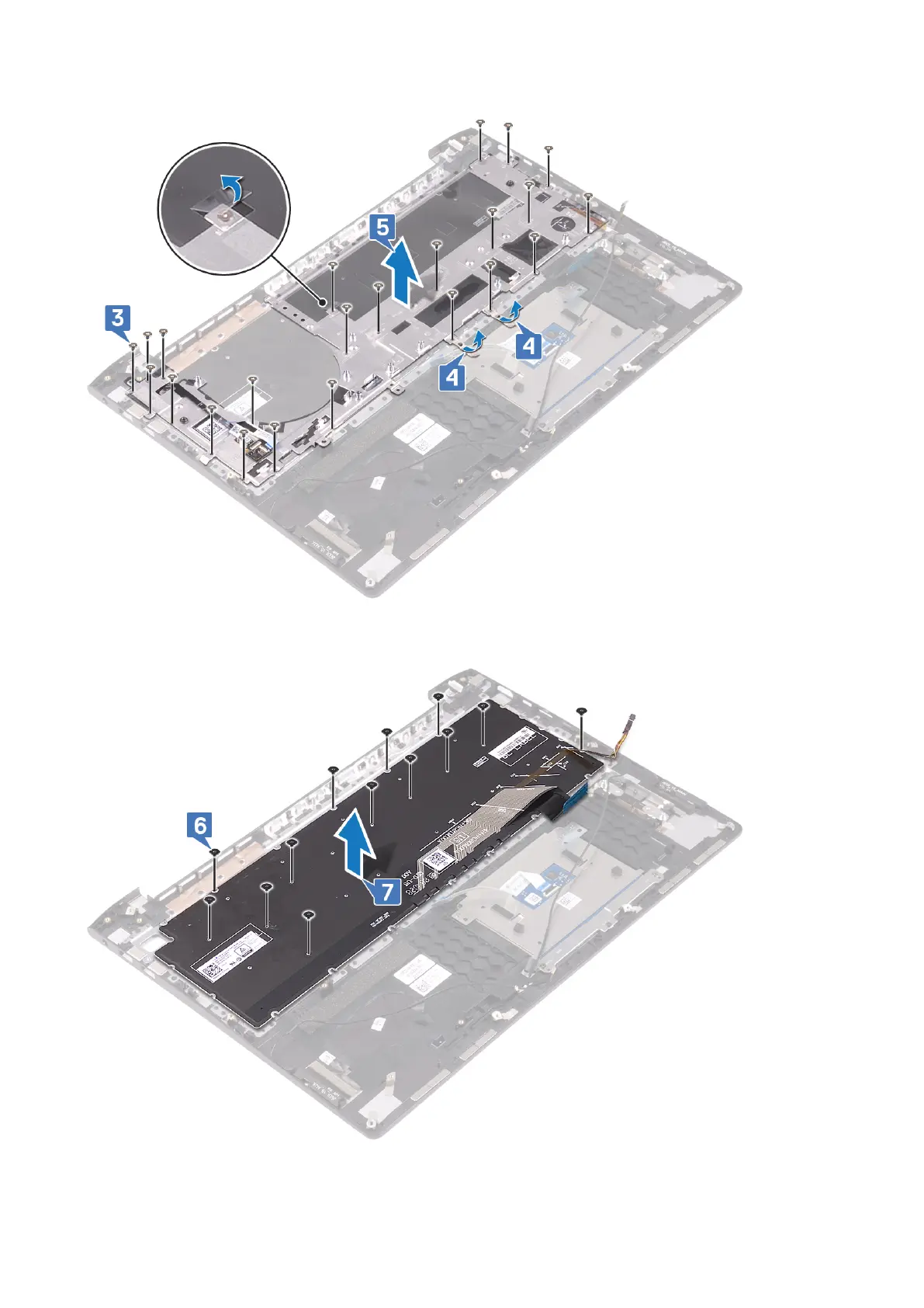 6. Remove the 19 screws (M1.2x1.5) that secure the keyboard to the palm-rest assembly.