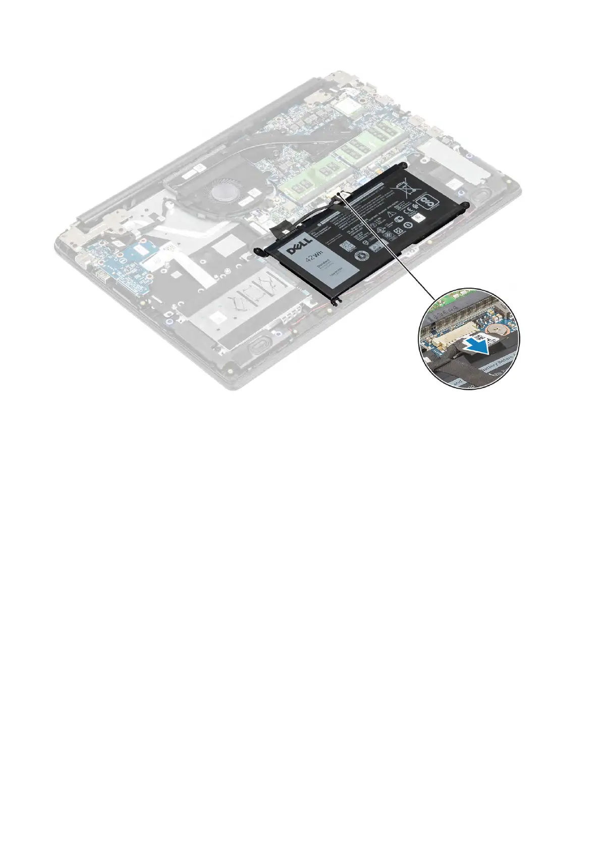 3. Lift the battery off the palmrest and keyboard assembly [2].
