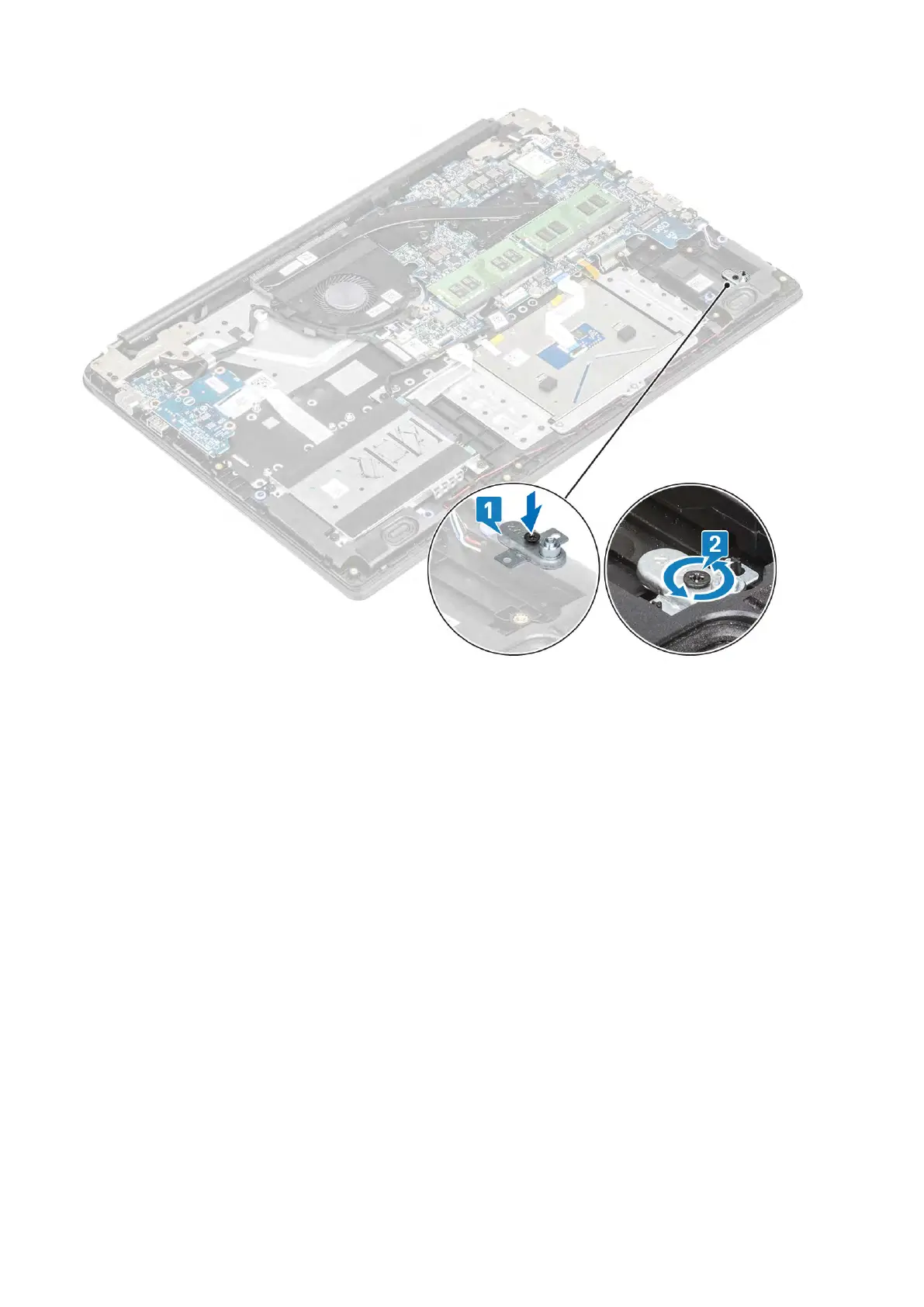 1. Remove the single (M2x3) screw that secures the thermal plate to the palmrest and keyboard assembly [1].