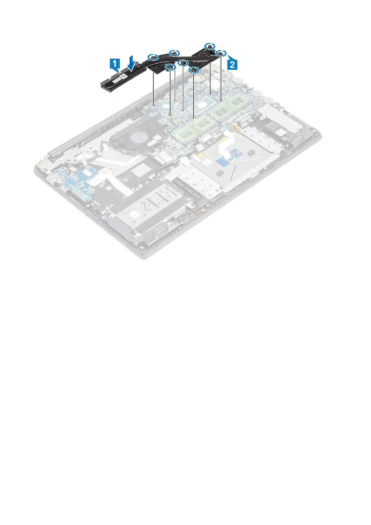 1. Disconnect the VGA daughterboard cable [1], and the display cable from the system board [2, 3].