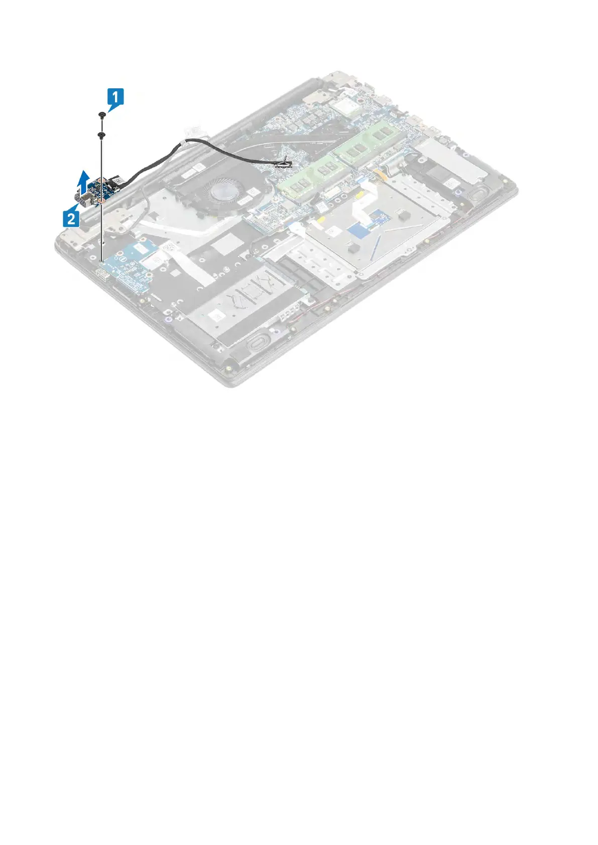 2. Replace the two (M2x3) screws that secure the VGA daughterboard on the palmrest and keyboard assembly [2].