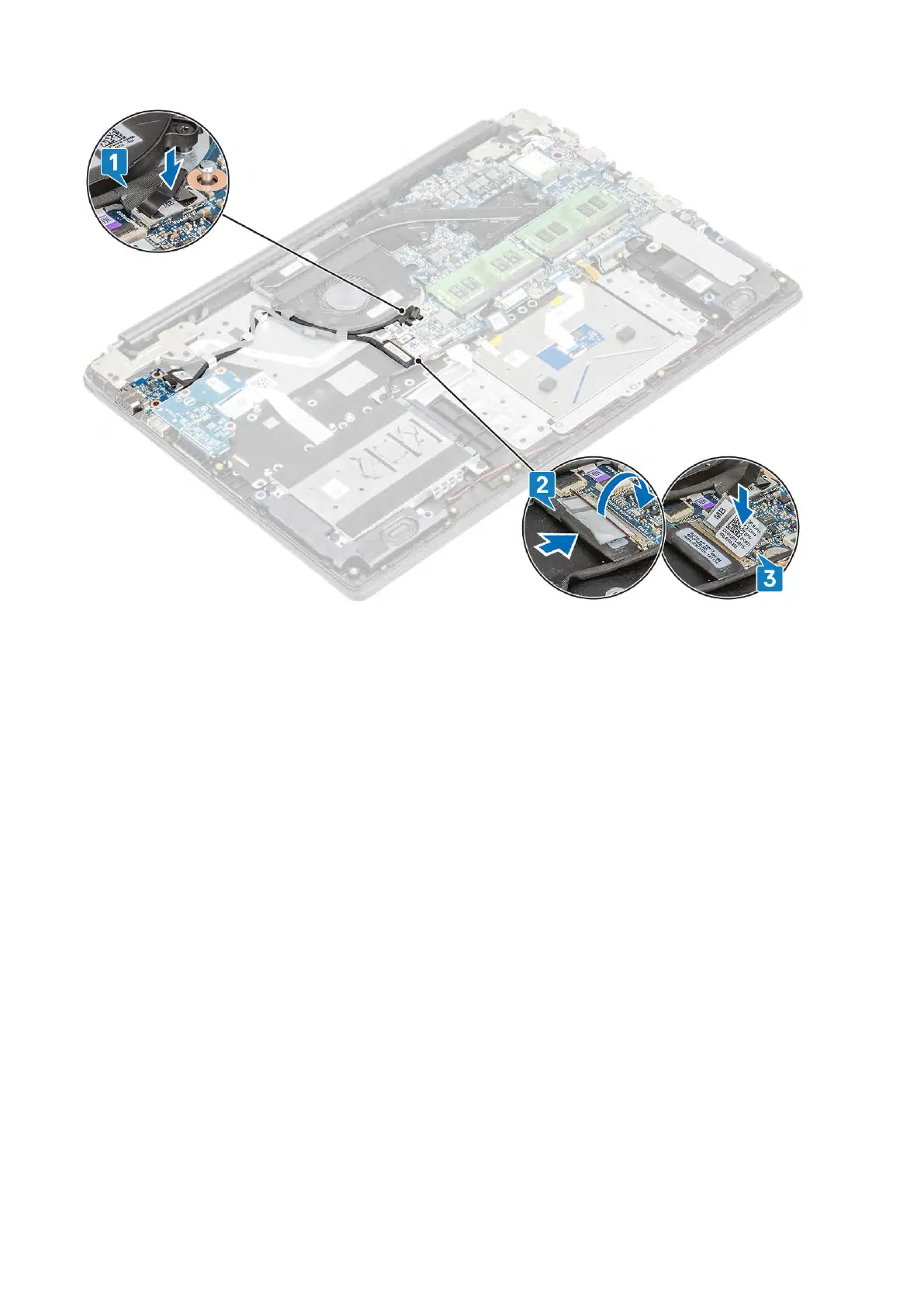 1. Open the latch, and disconnect the power button board cable and fingerprint cable from the system [1].