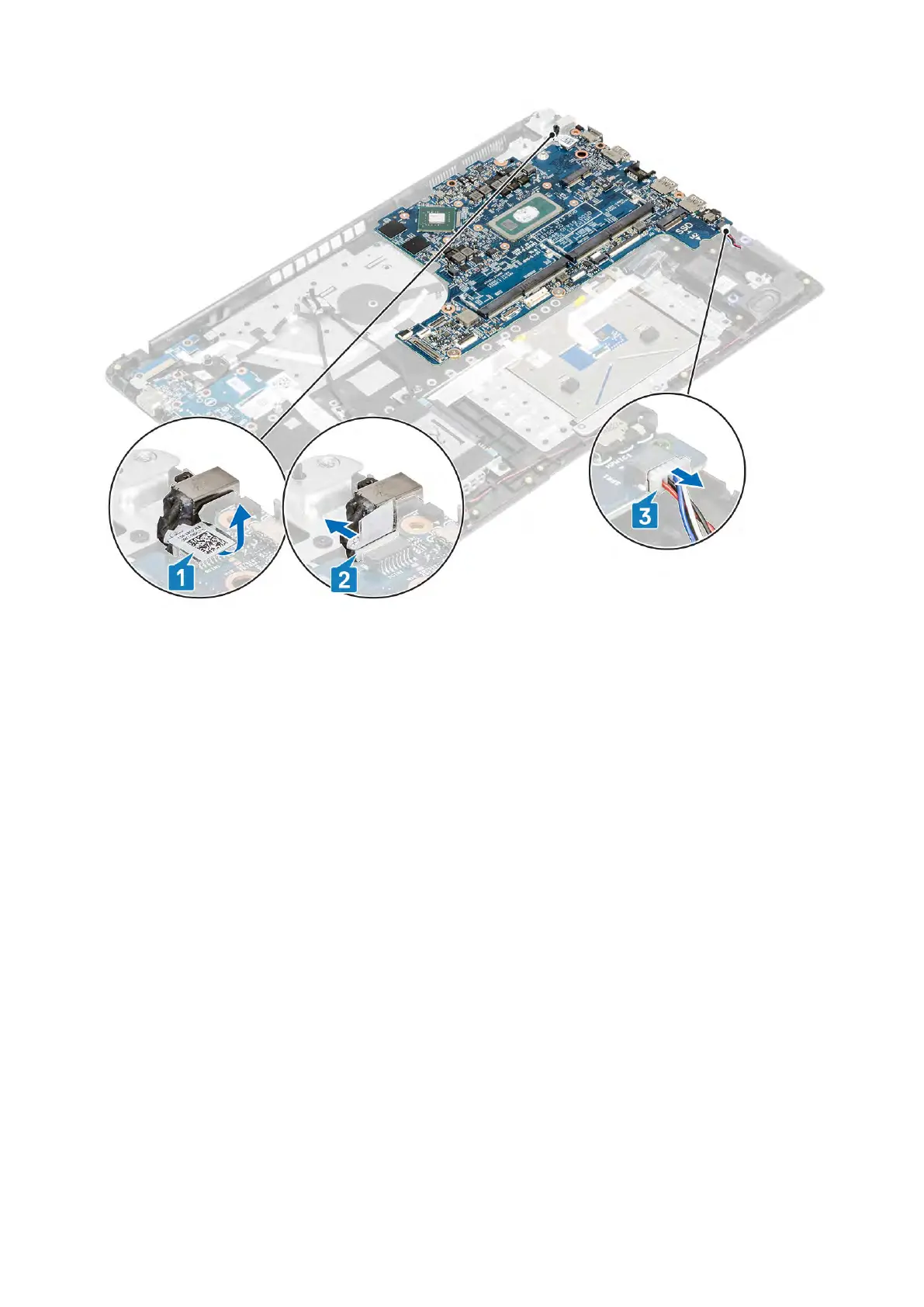 4. Lift the system board off the palm-rest and keyboard assembly [2].