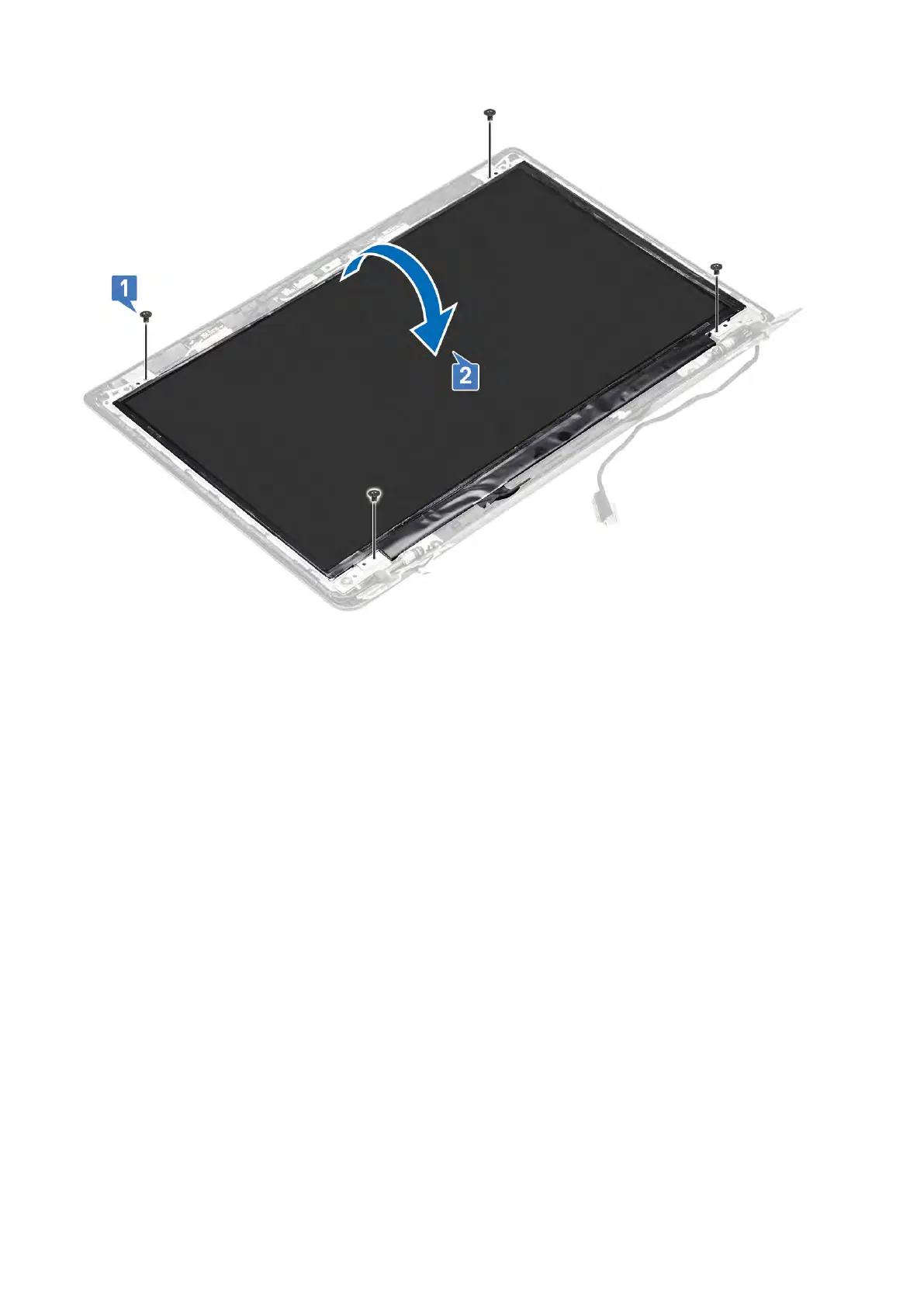 3. Peel the tape that secures the display cable to the back of the display panel [1].