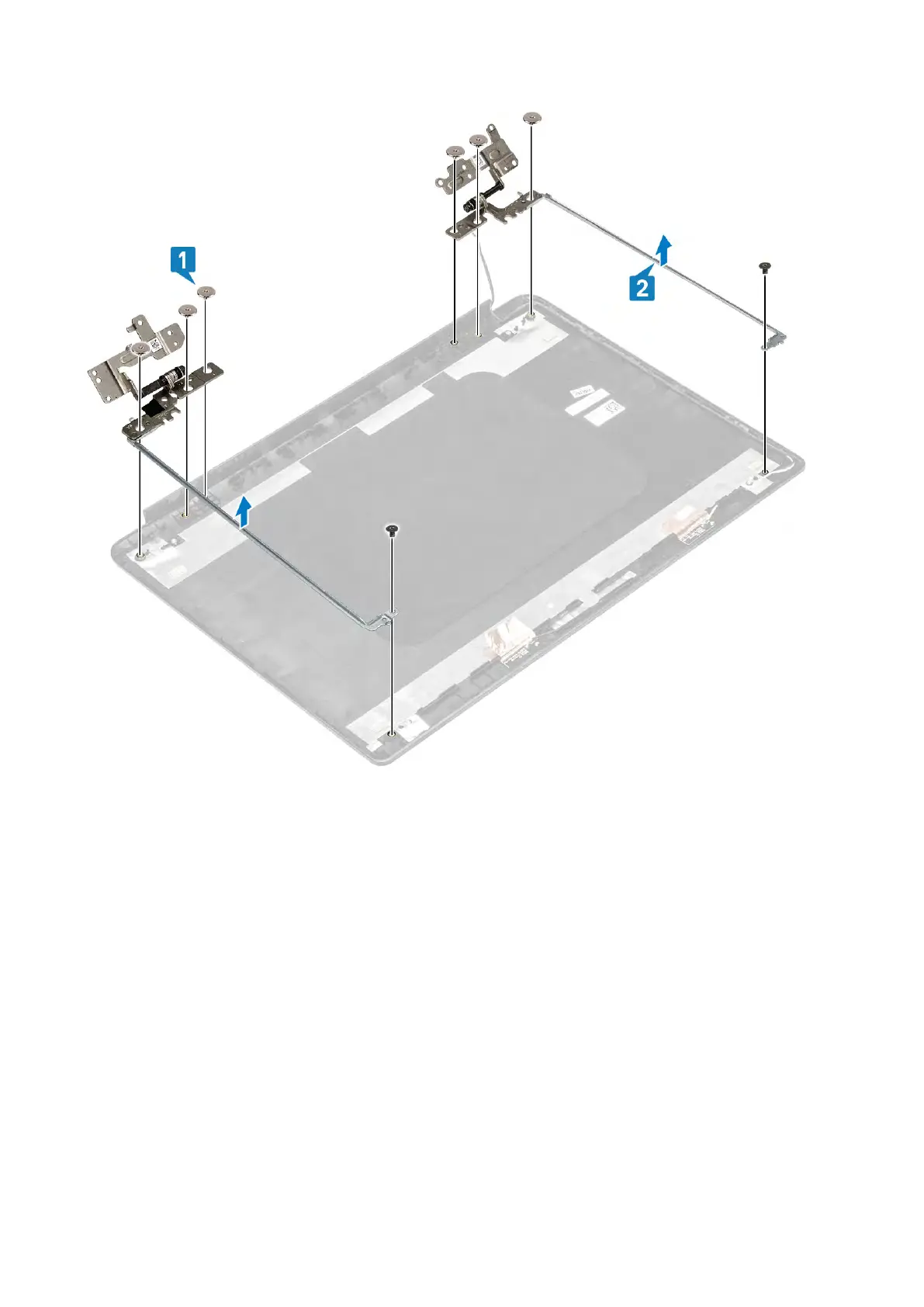 1. Align the screw holes on the hinges and brackets with the screw holes on the display back-cover[1].