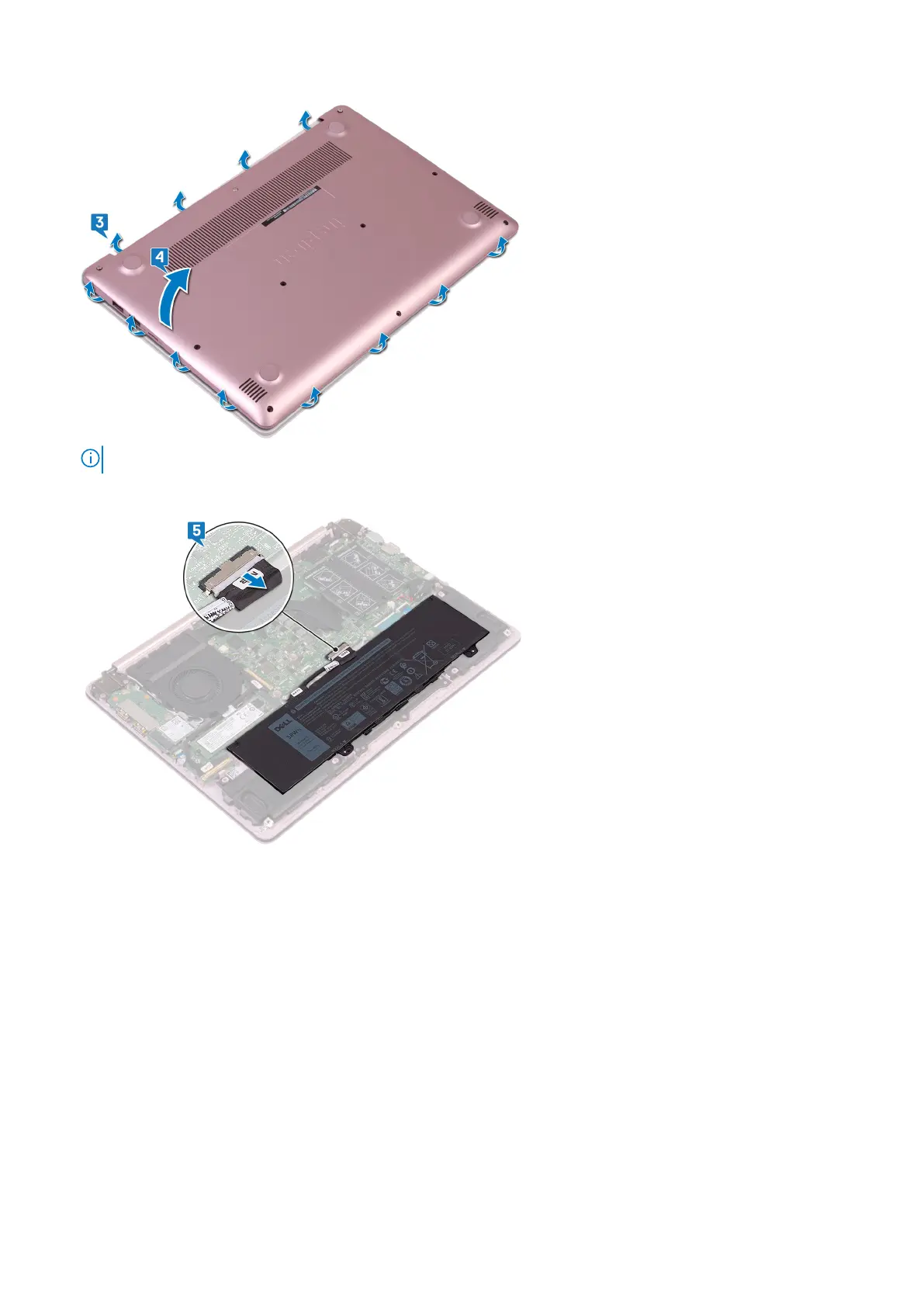 5. Disconnect the battery cable from the system board.