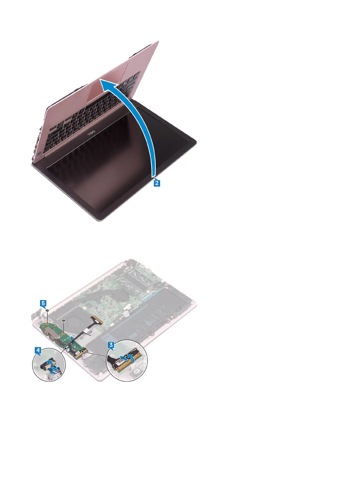 5. Remove the two screws (M2x2) that secure the I/O board to the palm-rest and keyboard assembly.