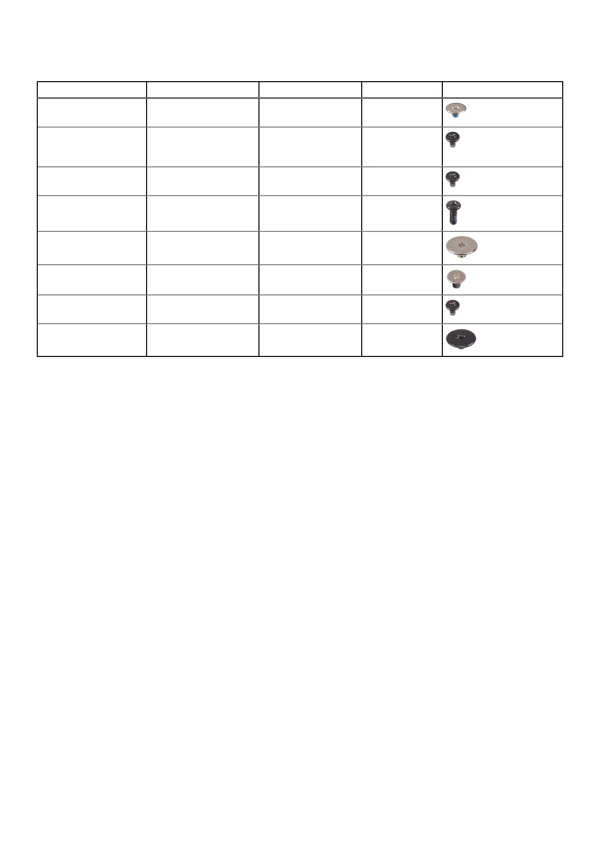 Table 1. Screw list (continued)