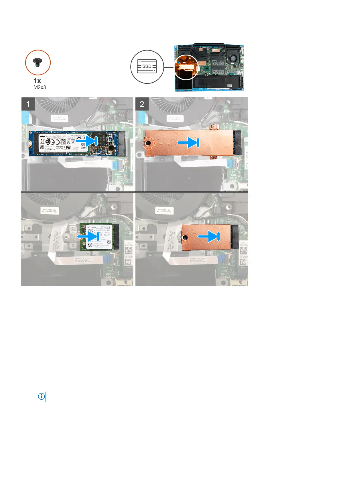 3. Install the screw (M2x3) that secures the solid-state drive/Intel Optane memory module to the system board.