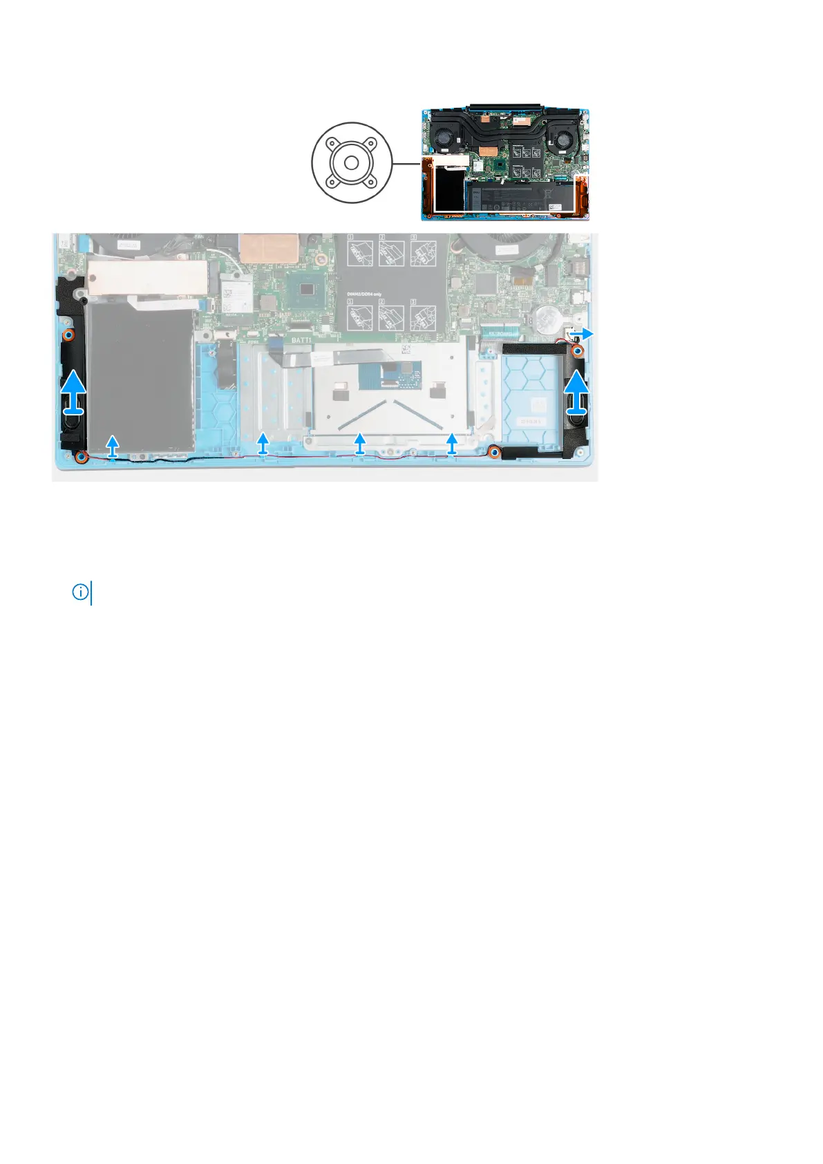 3. Lift the speakers, along with the cable, off the palm-rest and keyboard assembly.