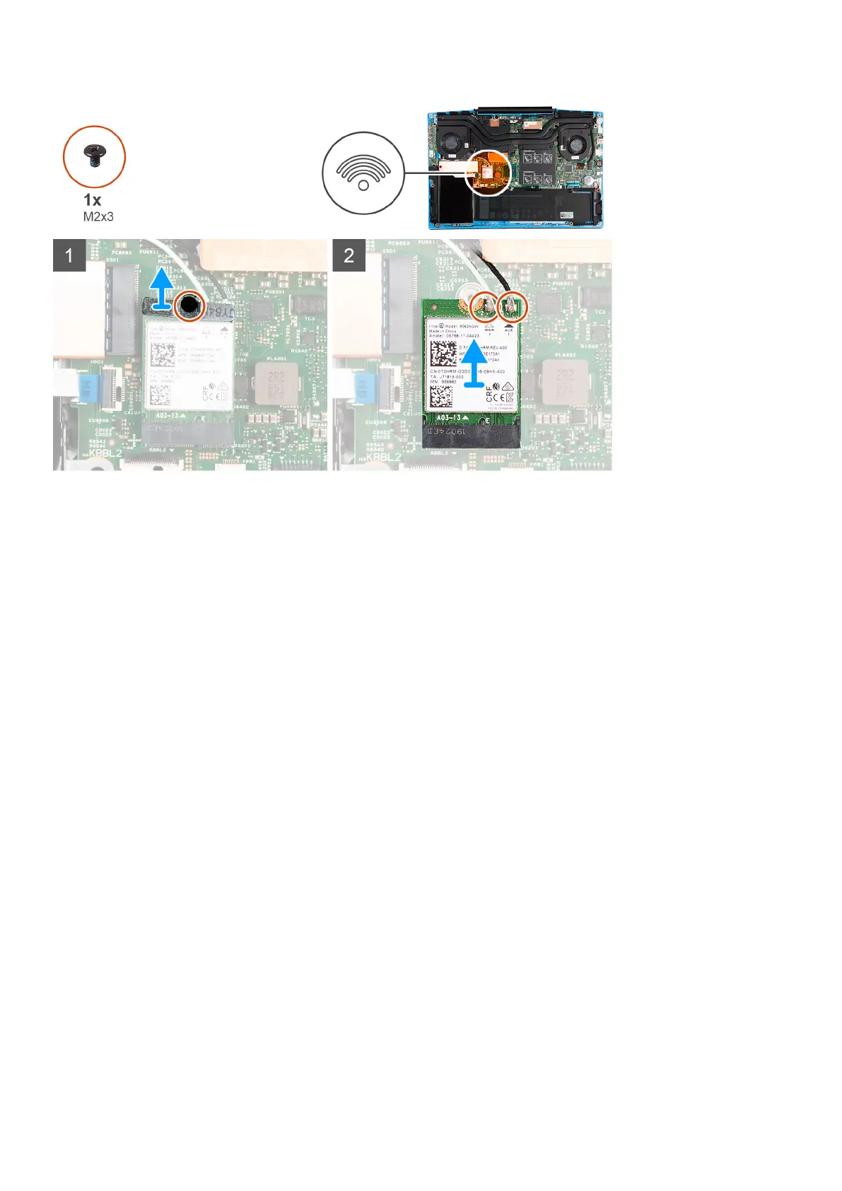 1. Remove the screw (M2x3) that secures the WLAN card to the system board.