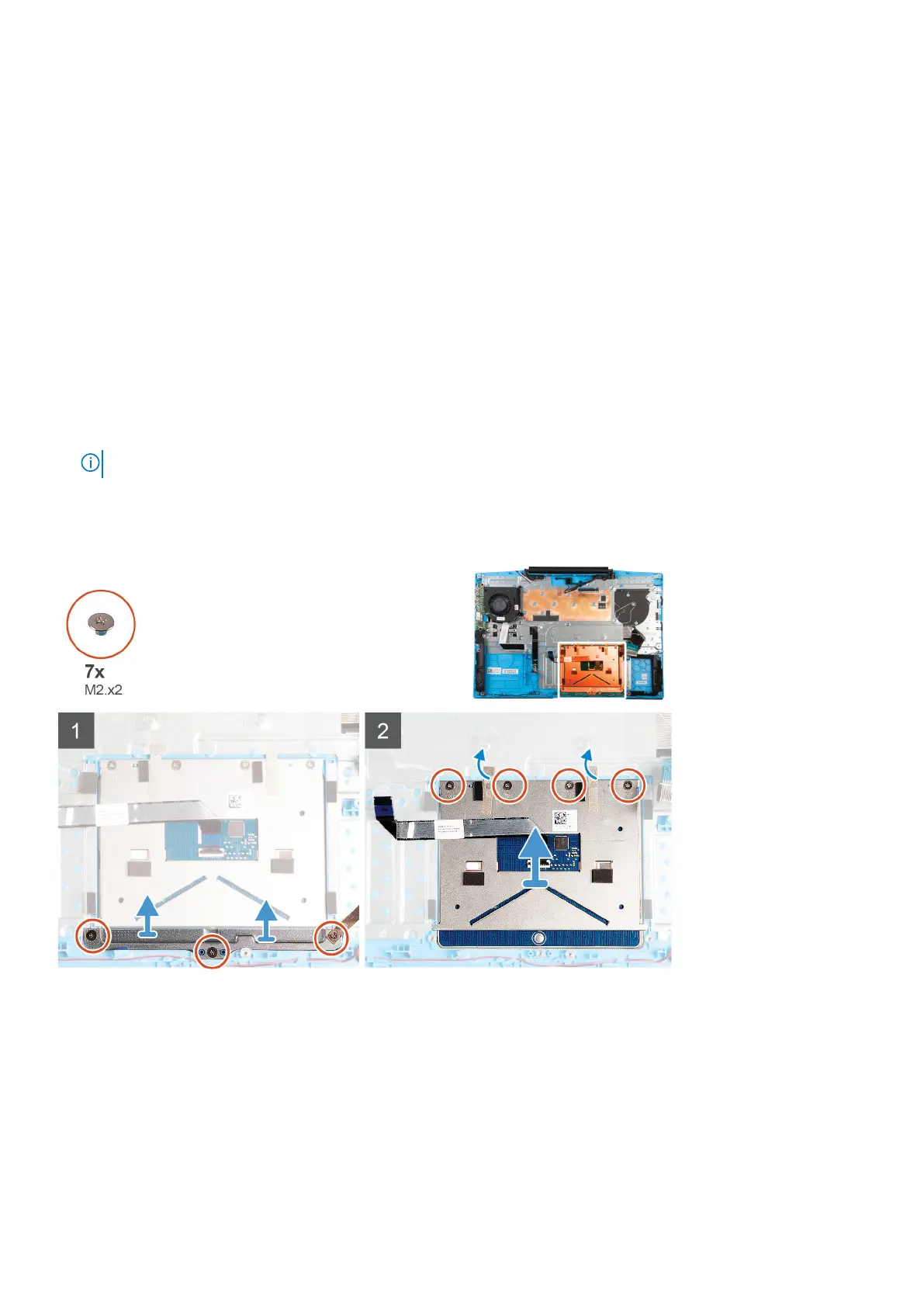 4. Remove the four (M2x2) screws that secure the touchpad to the palm-rest and keyboard assembly.