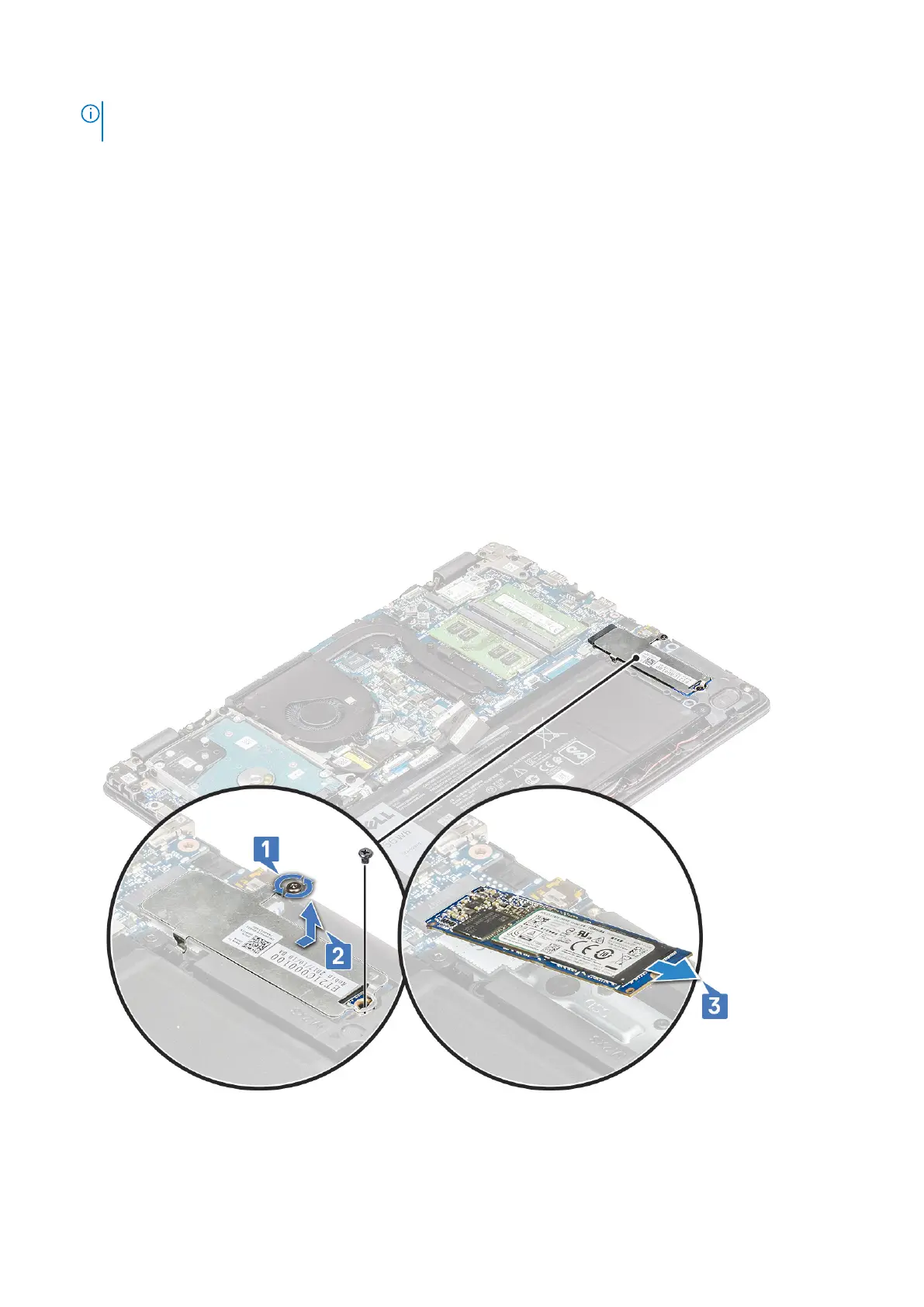 a. Remove the two (M2x3) screws that secures the SSD bracket to the system [1], and lift the bracket from the system
