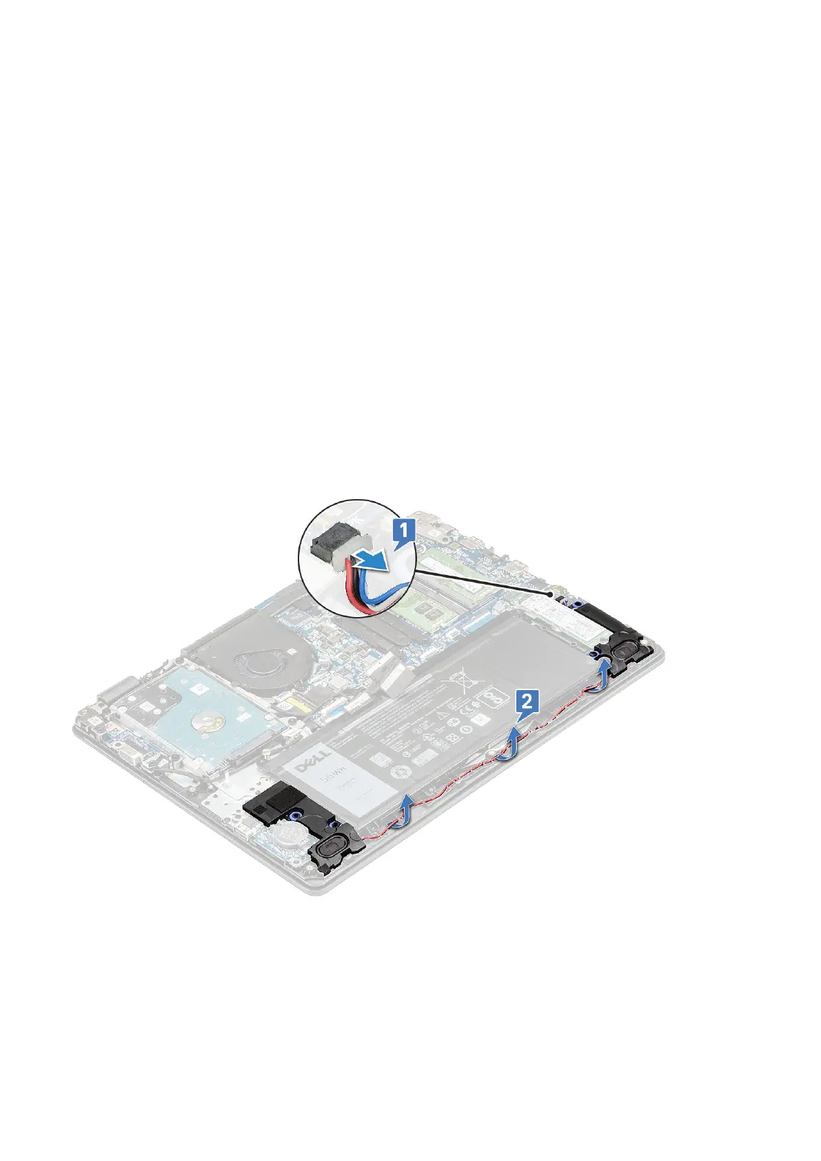 a. Disconnect the speaker cable from the connector on the system board [1].