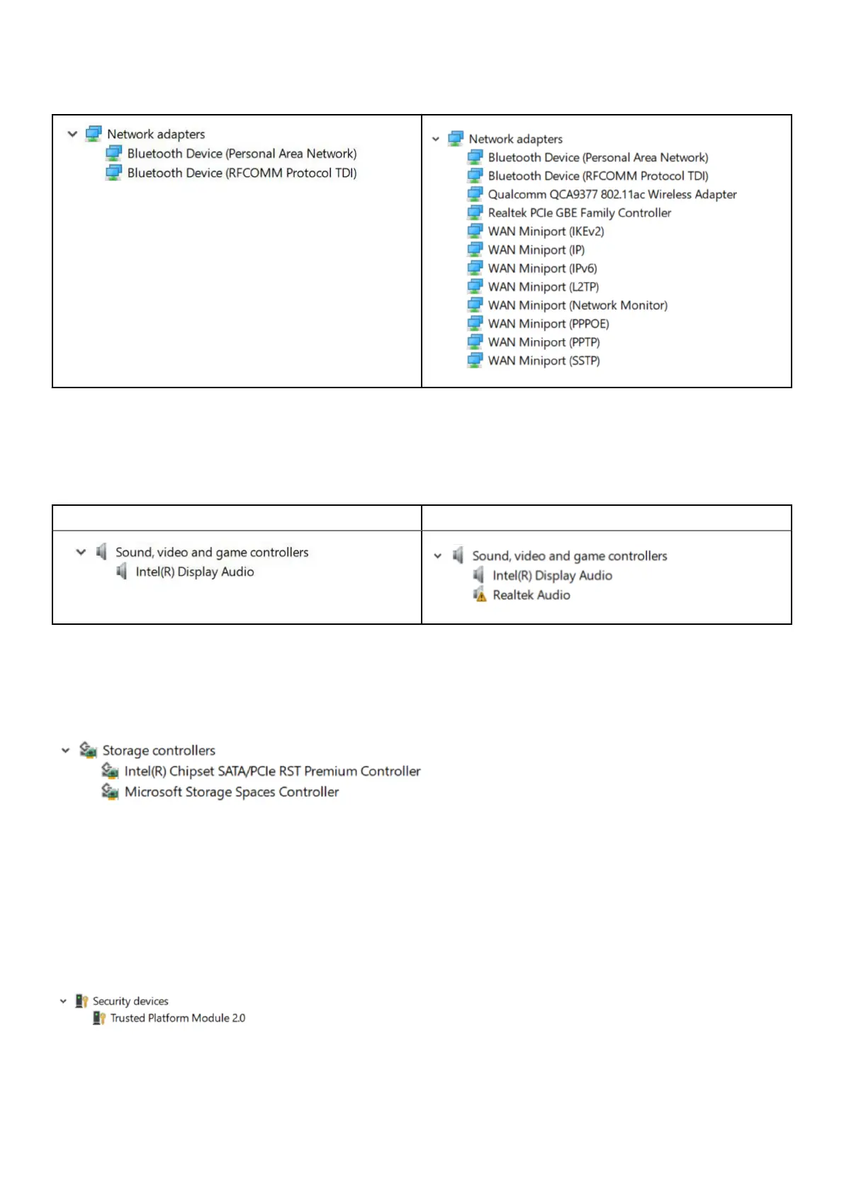 This section lists the security devices in the Device Manager.