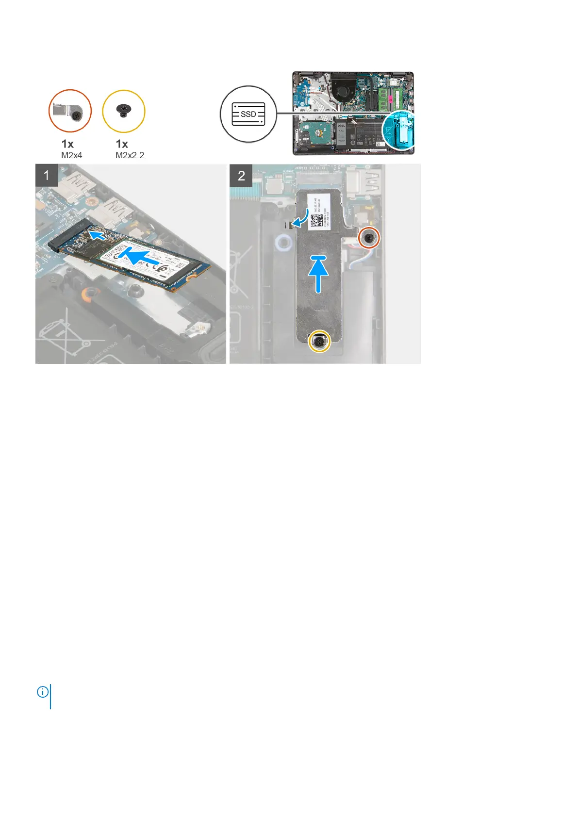 5. Replace the screw (M2x2.2) that secures the M.2 thermal shield to the palm-rest and keyboard assembly.