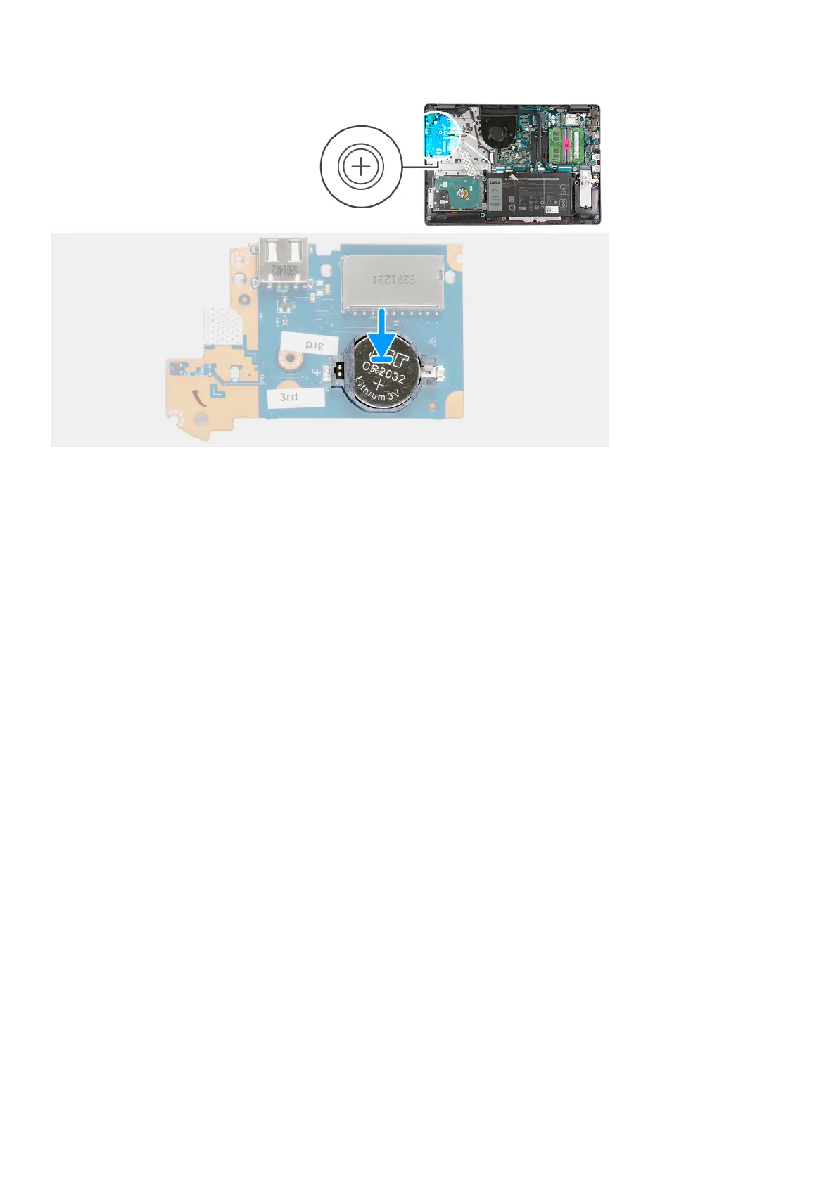 2. Press down on the coin-cell battery to lock it in place in the coin-cell battery holder.